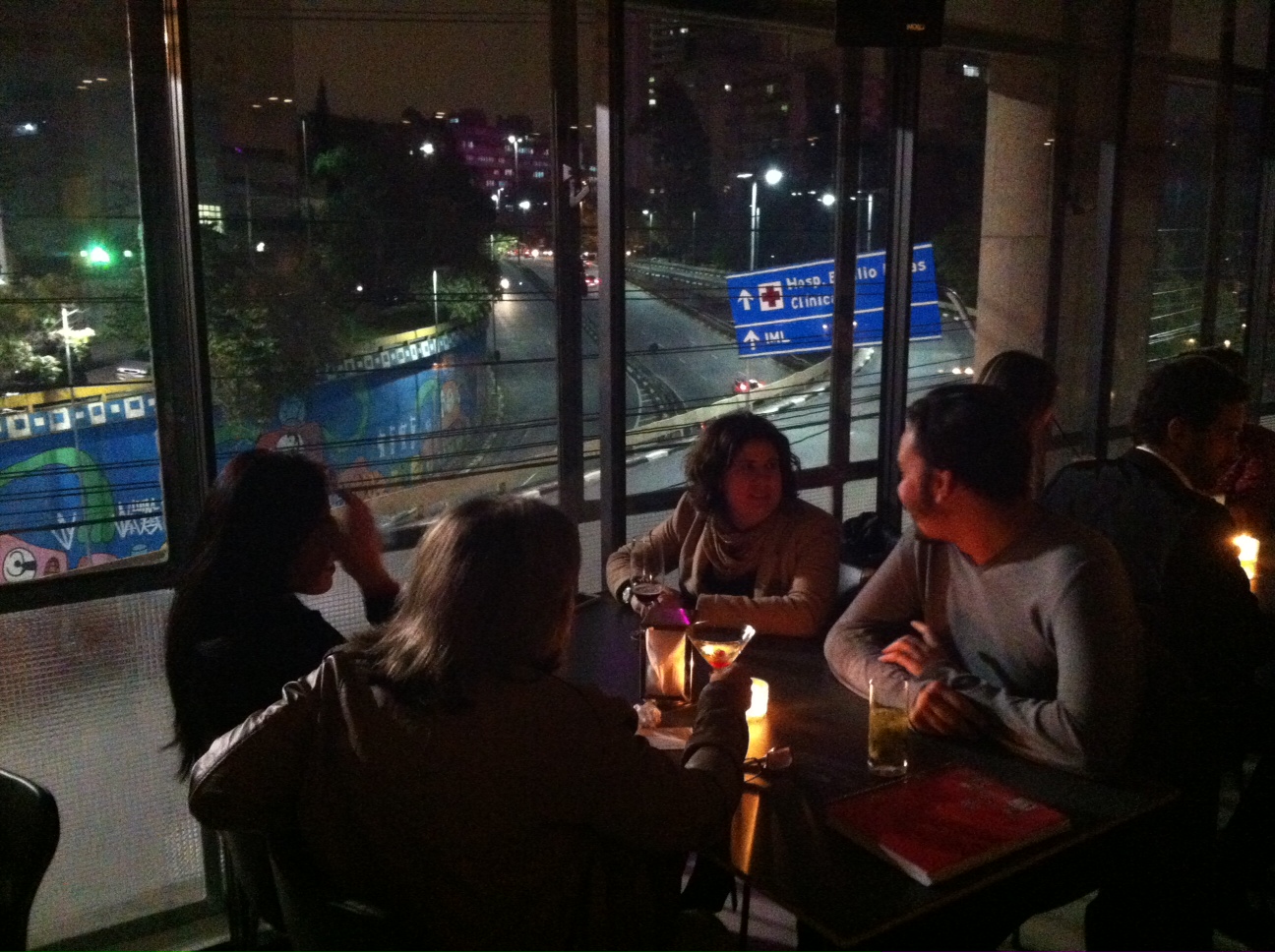 Depois de terminar minha bebida, subi a escada em espiral para jantar, e chegando lá, mais uma surpresa: me deparei com um restaurante com uma vista incrível da cidade. Sente só: