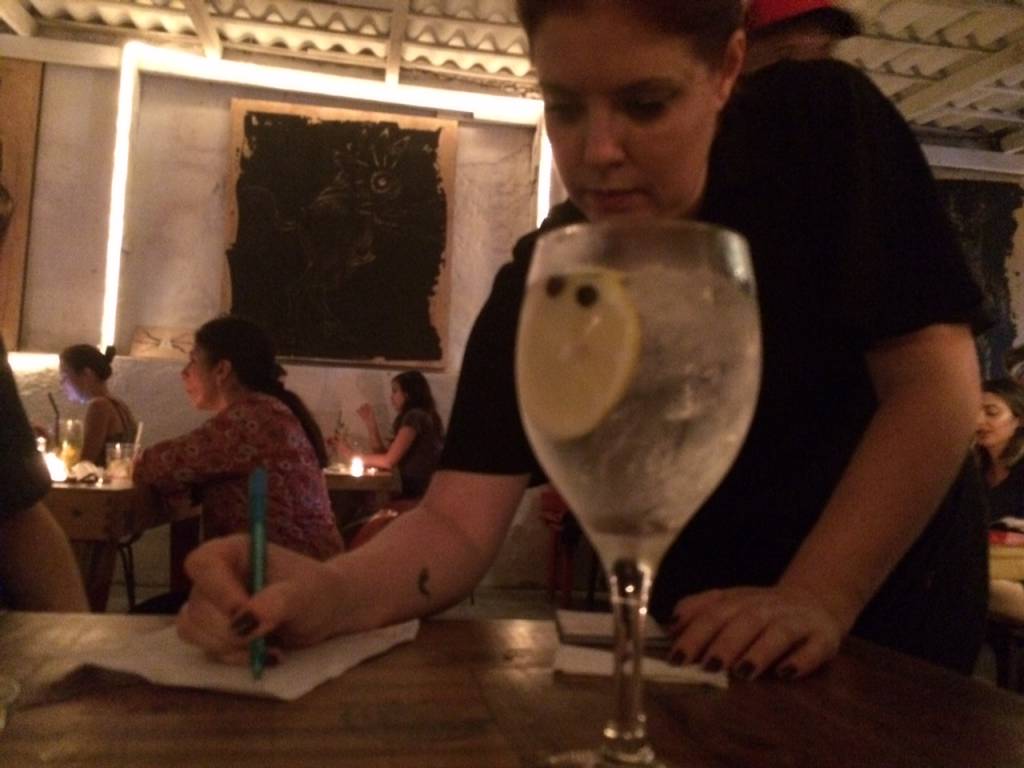 Daí em diante, minha mesa recebeu uma surpresa atrás das outras. Por meio da apresentação delicada em que vinham as comidas, das louças que as emolduravam e dos detalhes dos drinques. Todos nossos pedidos foram trazidos pelas mãos de Néli Pereira, jornalista da BBC Brasil que acompanho e que, por lá, descobri ser uma das proprietárias do local.