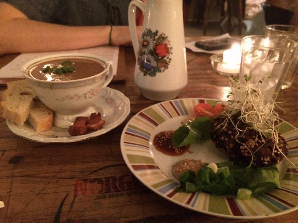Me deixei absorver pelas paredes, depois pelas pessoas e quando vi estava mergulhado no cardápio: repleto de releituras de pratos clássicos. A fome me fez ir direto ao caldinho de feijão e ao bolinho de carne.