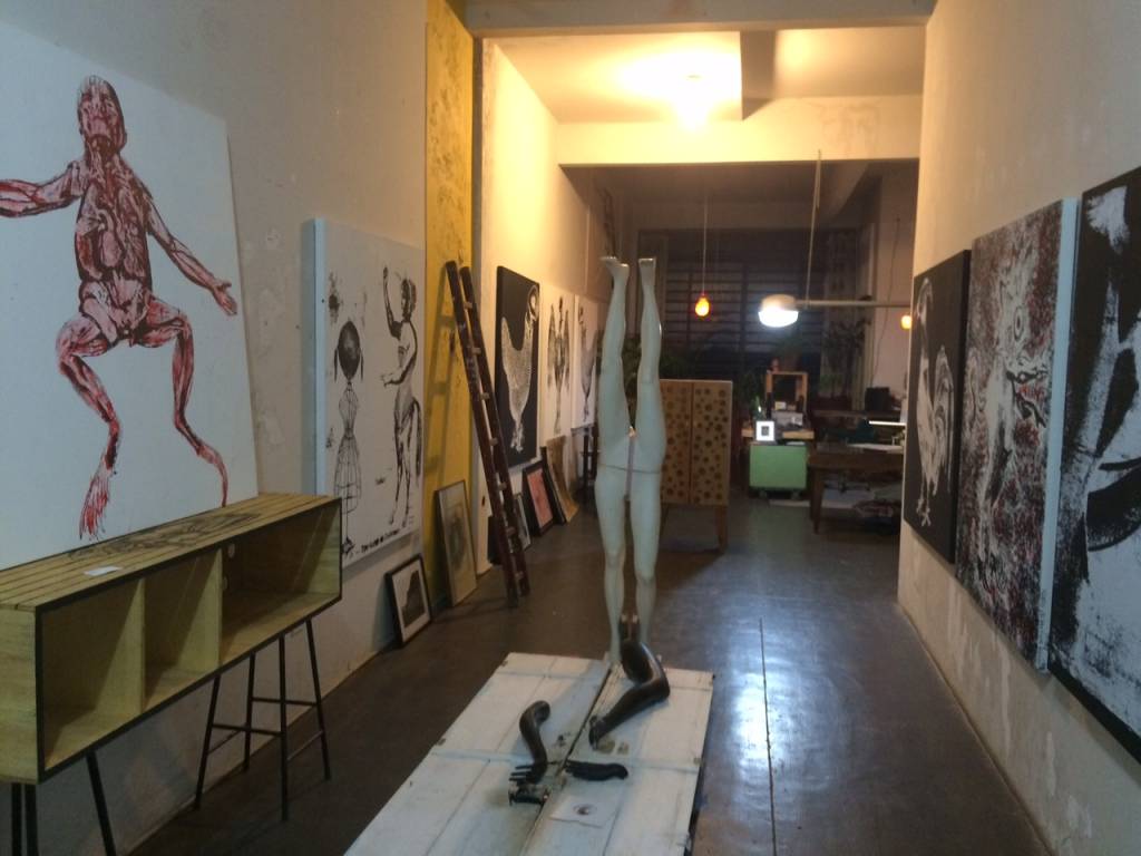 Penetrar nessa luz do Espaço Zebra é a invasão de um espaço fantástico: sua entrada é um ateliê. Um local criativo para artes e marcenaria onde quadros e telas amplas circundam móveis que fogem do senso comum.