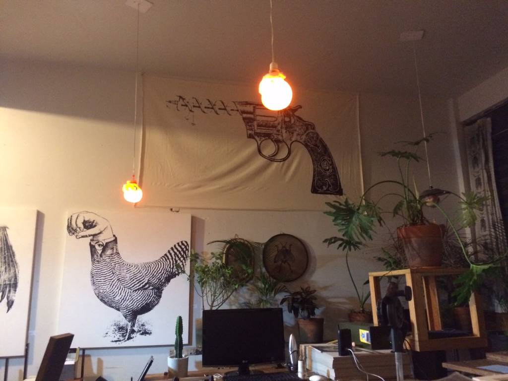 Depois, na hora de pagar a conta, troquei alguns bons instantes de prosa com Néli. Elogiei o local e essa tal “atmosfera eclética e cheia de informação que ferve na Major Diogo”. Fiquei com vontade de escrever sobre o Espaço Zebra. Com vontade de voltar para comprar um quadro no ateliê. Me imaginei fazendo tudo isso junto: escrevendo enquanto comprava um quadro em um momento alcoolizado de cataia. Quem sabe um dia.