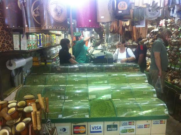 Fui tomada por uma explosão de cheiros deliciosos, e é preciso dar umas belas cafungadas para reconhecer cada um deles. Conversando com a caixa de um restaurante vegetariano delicioso onde almocei, o Telúrico, a moça me explicou que aquela confusão de cheiros vinha de alguns bares que serviam os típicos pratos do mercado: tainha na telha, mocotó e feijoada. Após o almoço, me dirigi a outro estabelecimento famoso no local, o Café do Mercado. Também vi que ao invés de degustação de chimarrão (pode ser estranho pra um gaúcho, mas acho que é um negócio que daria certo pros turistas), o mercado tem lojas e mais lojas próprias para você comprar e preparar seu mate. Todos os tipos de ervas, bombas, cuias e garrafas térmicas são vendidos, uma diversão só.
