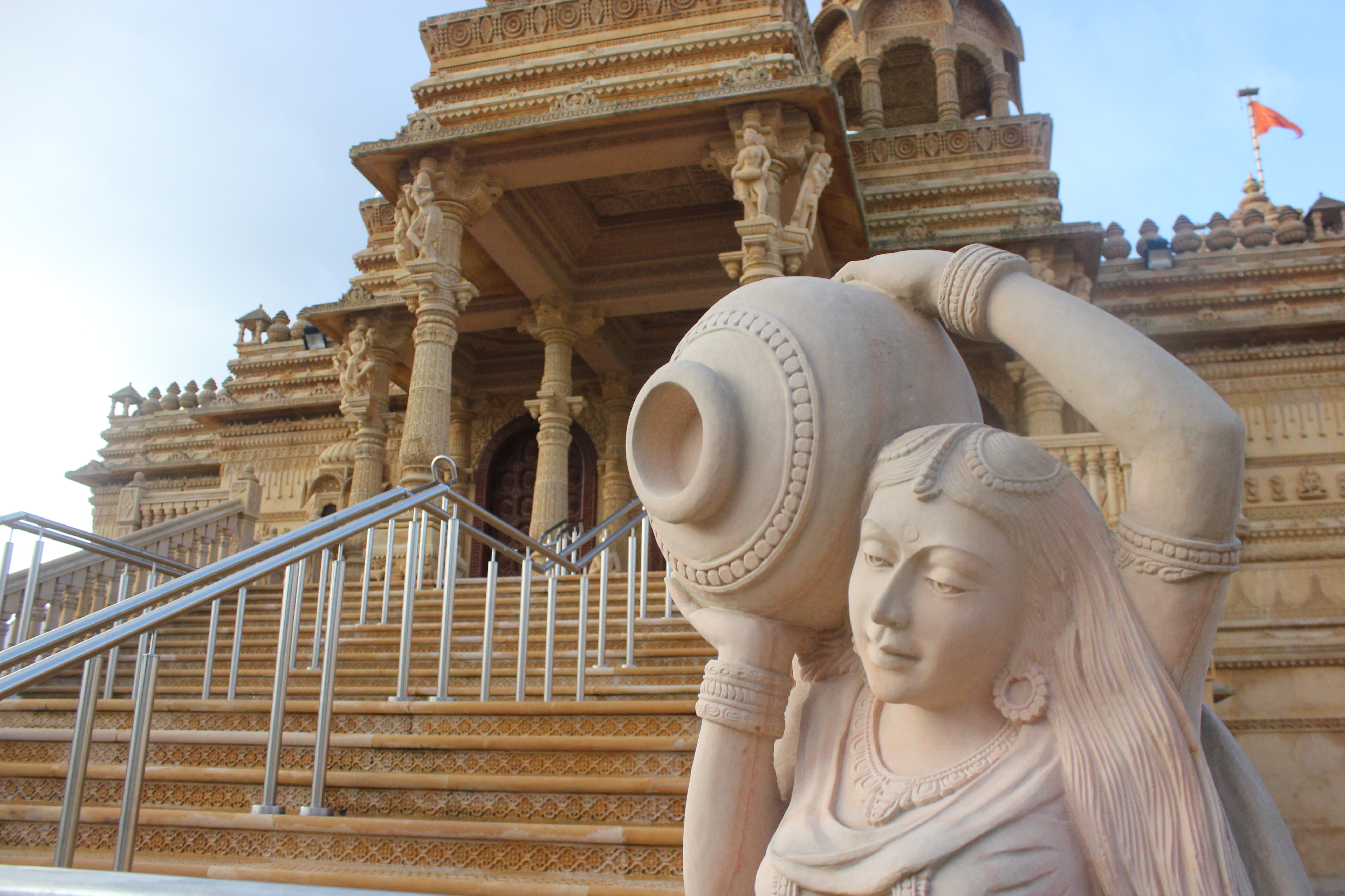 Depois de dar uma passadinha na feirinha que tem de domingo atrás do estádio de Wembley (o terceiro maior da Europa), finalmente fomos rumo ao maior templo hindu do mundo, com exceção dos da Índia. Este foi inaugurado em 1995, e levou apenas dois anos e meio para ser construído, e tanto os vídeos quantos os panfletos que li dizem que isso foi possível graças a ajuda de mais de 3.000 voluntários. E realmente é de se admirar que um lugar tão grandioso tenha sido construído em tão pouco tempo.