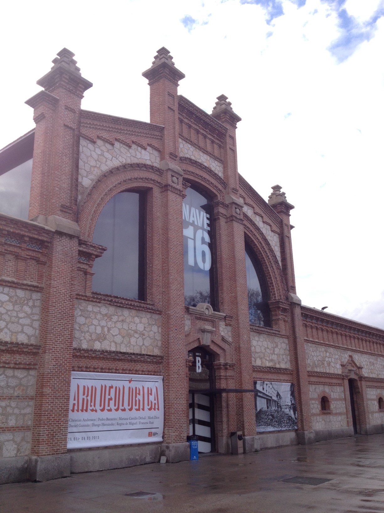 Bem no centro do Matadero há uma praça enorme – rodeada pela arquitetura dos bonitos golpões – que estava vazia devido à chuva, mas que imaginei ser um lugar muito vivo, cheio de pessoas nos finais de semana de sol. Porém junto à mim e à chuva também havia na praça retratos do espanhol Jorge Fuembuena, que fez um jogo de imagens bem legais com a frente do corpo, onde fica o rosto, e atrás, onde fica a nuca – que também não deixa de ser um retrato.