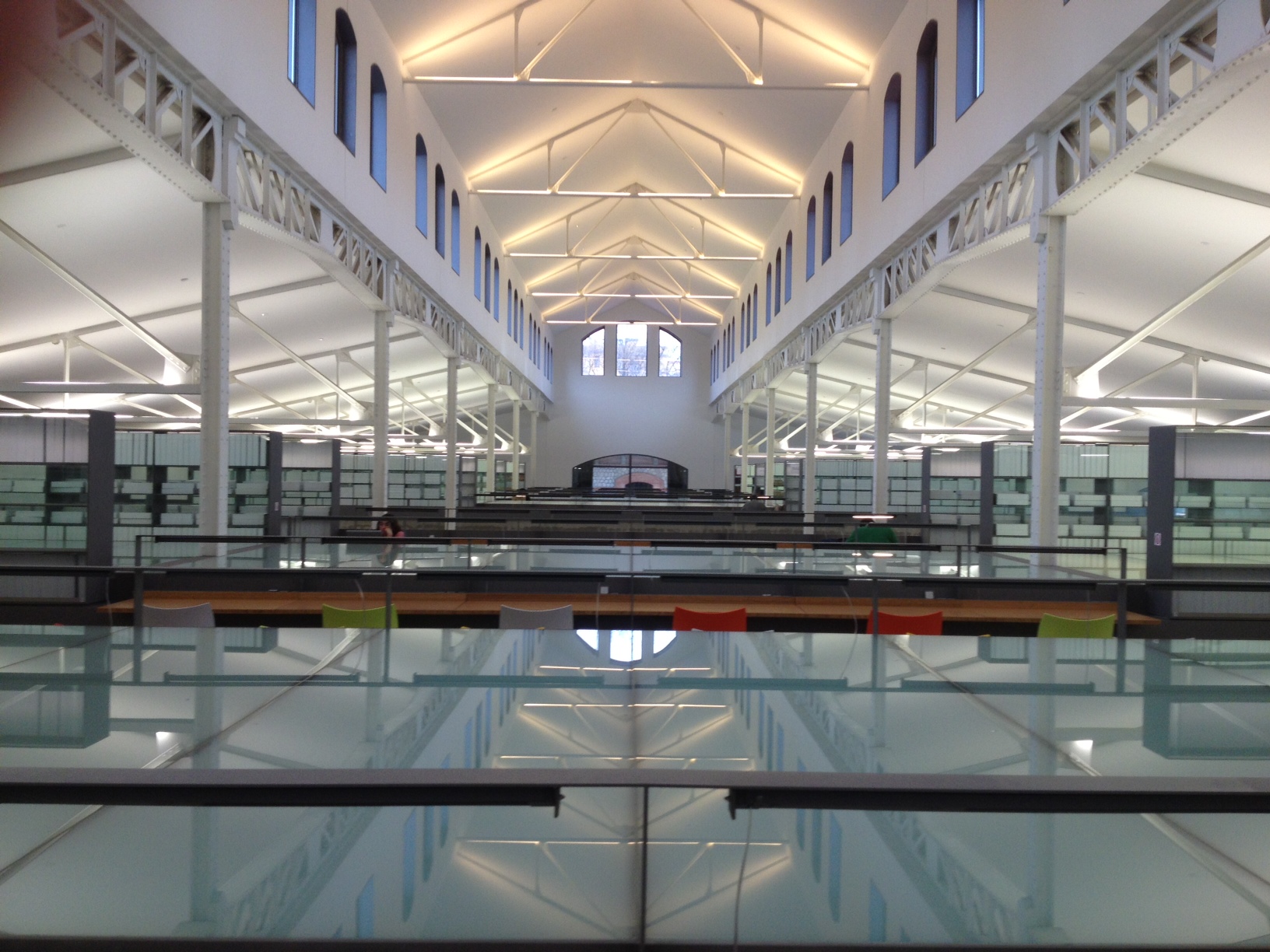 Essa imensidão que o espaço é por fora também reflete no seu interior. As naves, além de serem enormes, são organizadas com poucas mobílias, ampliando ainda mais o lugar. Cadeiras confortáveis pelos salões, exposições, livros… dá para se sentir em casa, quer dizer, no meu caso temporário aqui na Espanha, dá pra se sentir até melhor que em casa!