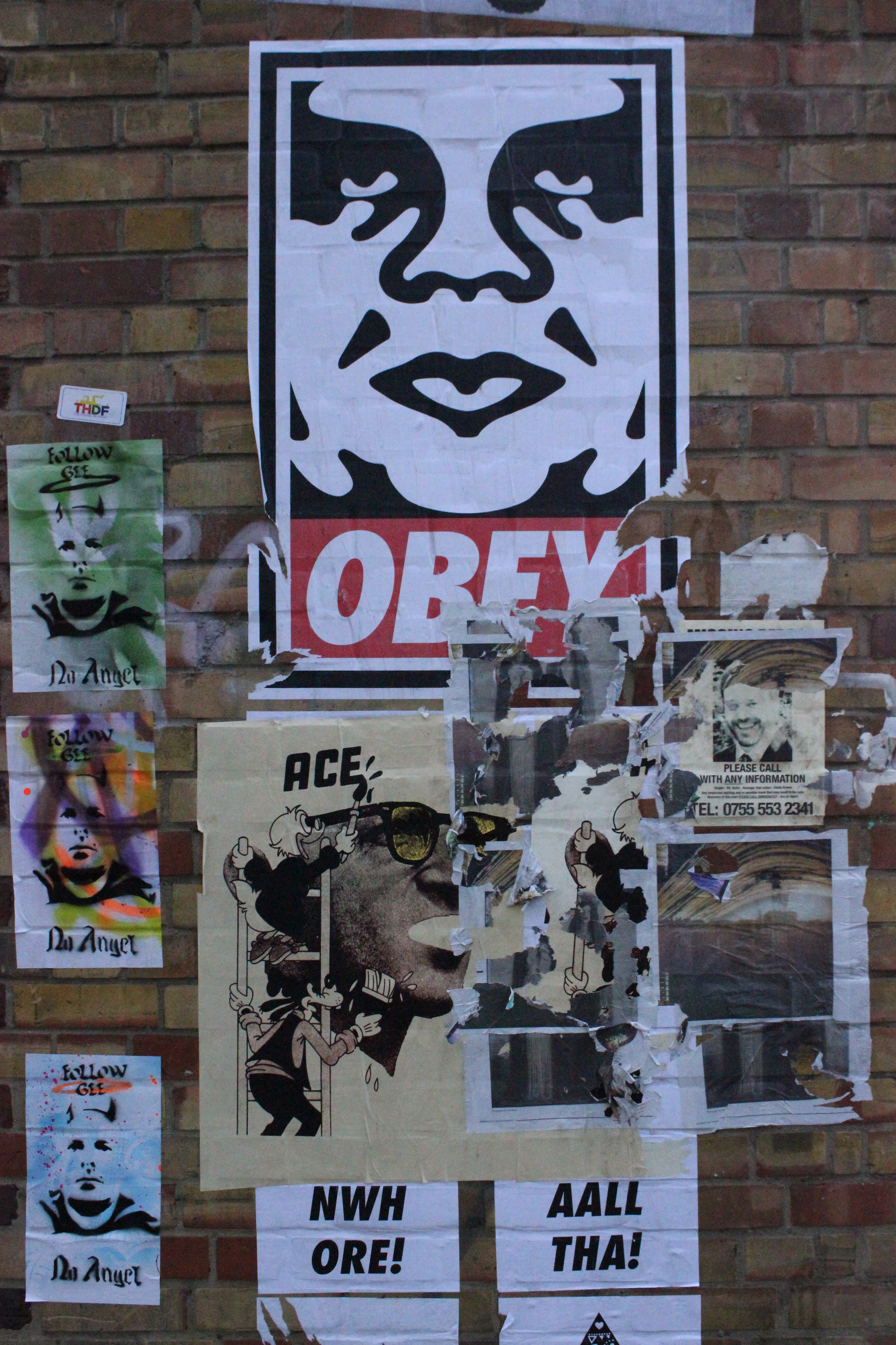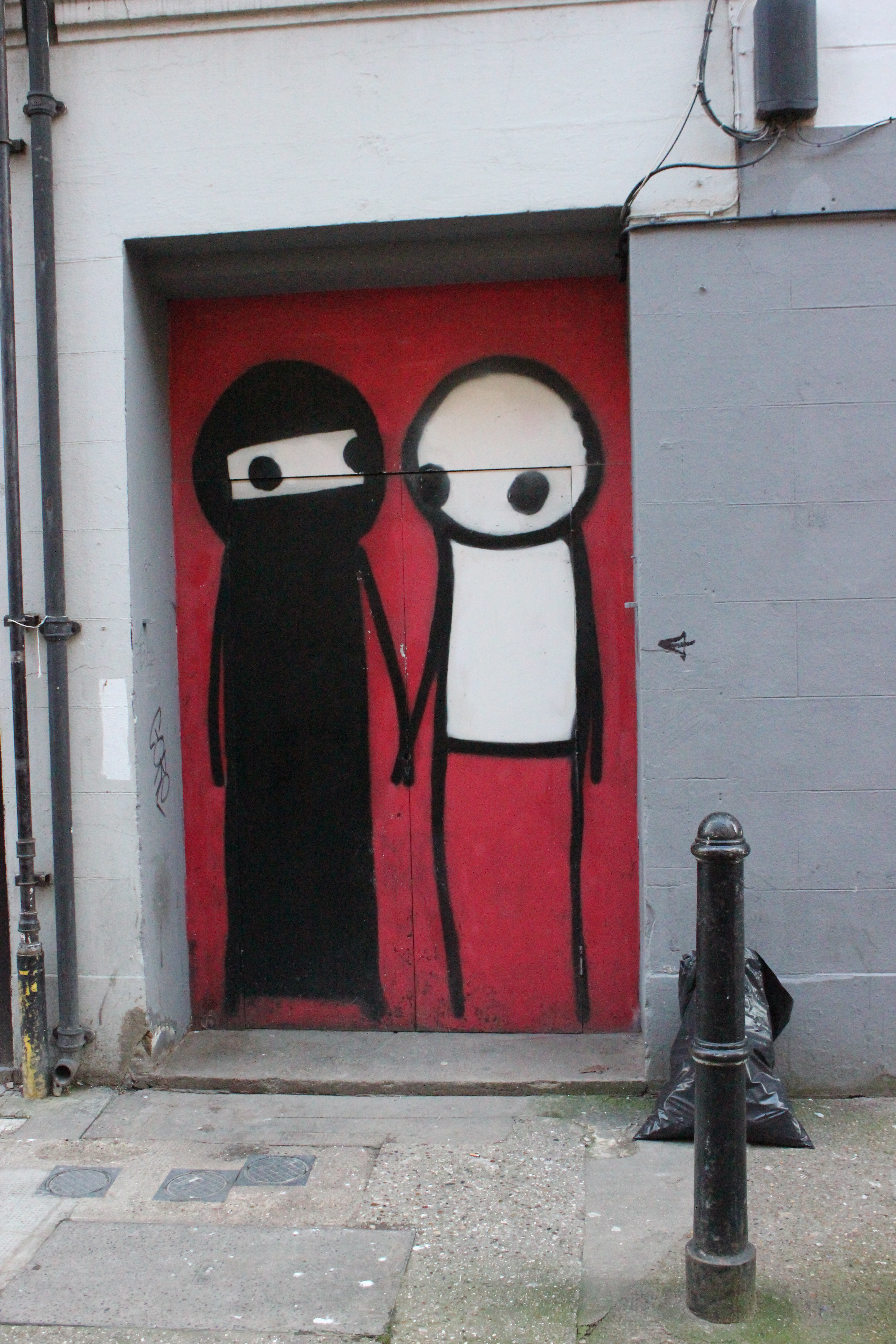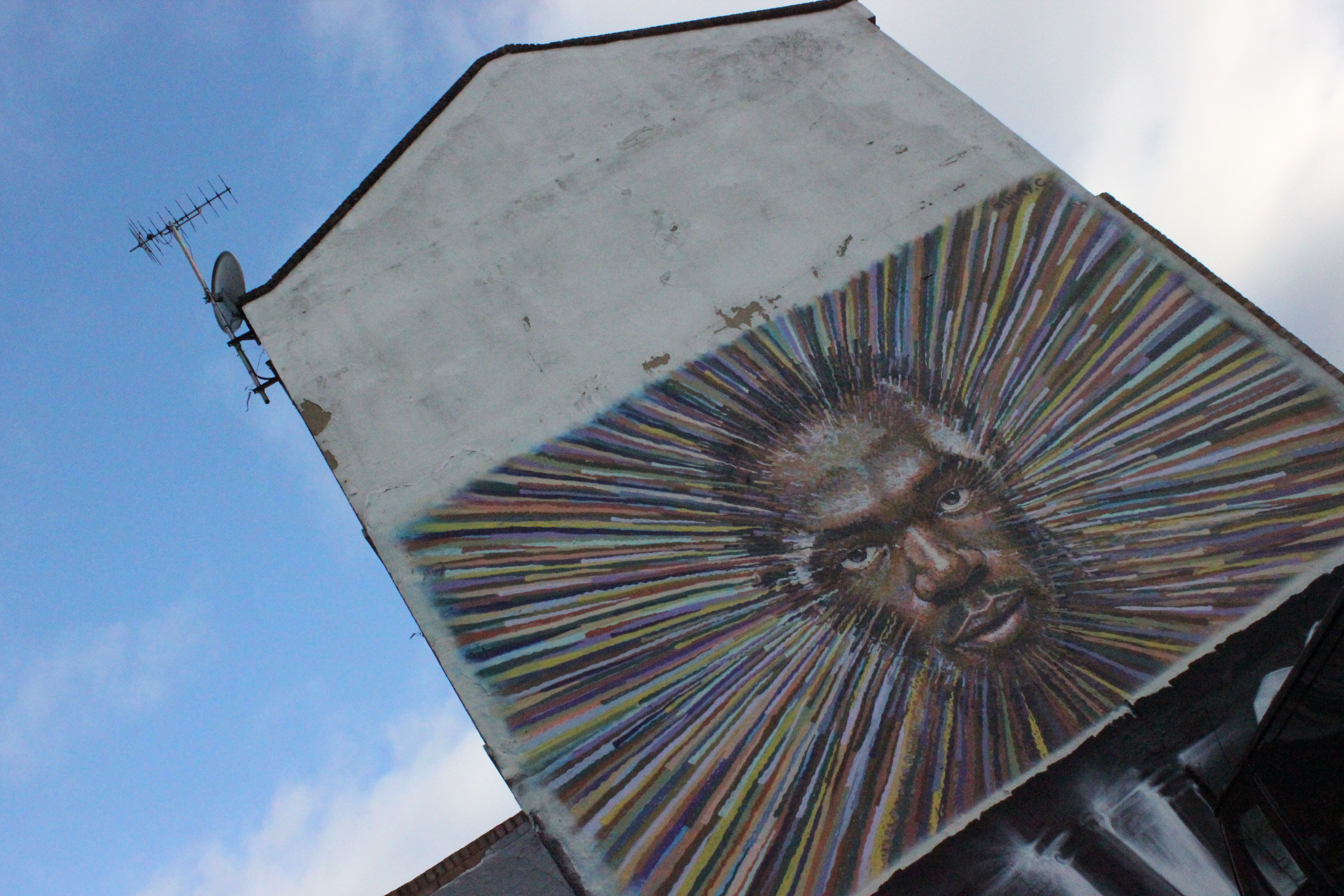 Ao chegar no local, vimos e estudamos o mapa da região tomando um espresso, traçamos um roteiro que julgávamos termos boas chances de encontrar obras e começamos a caminhada. Nosso primeiro achado foi em uma ruela, dessas descritas na matéria sobre o Jack, uma obra do Paul Don Smith, camarada que faz sua arte desde os anos 80 pelas ruas inglesas. Foi muito legal achar esse tipo de coisa.