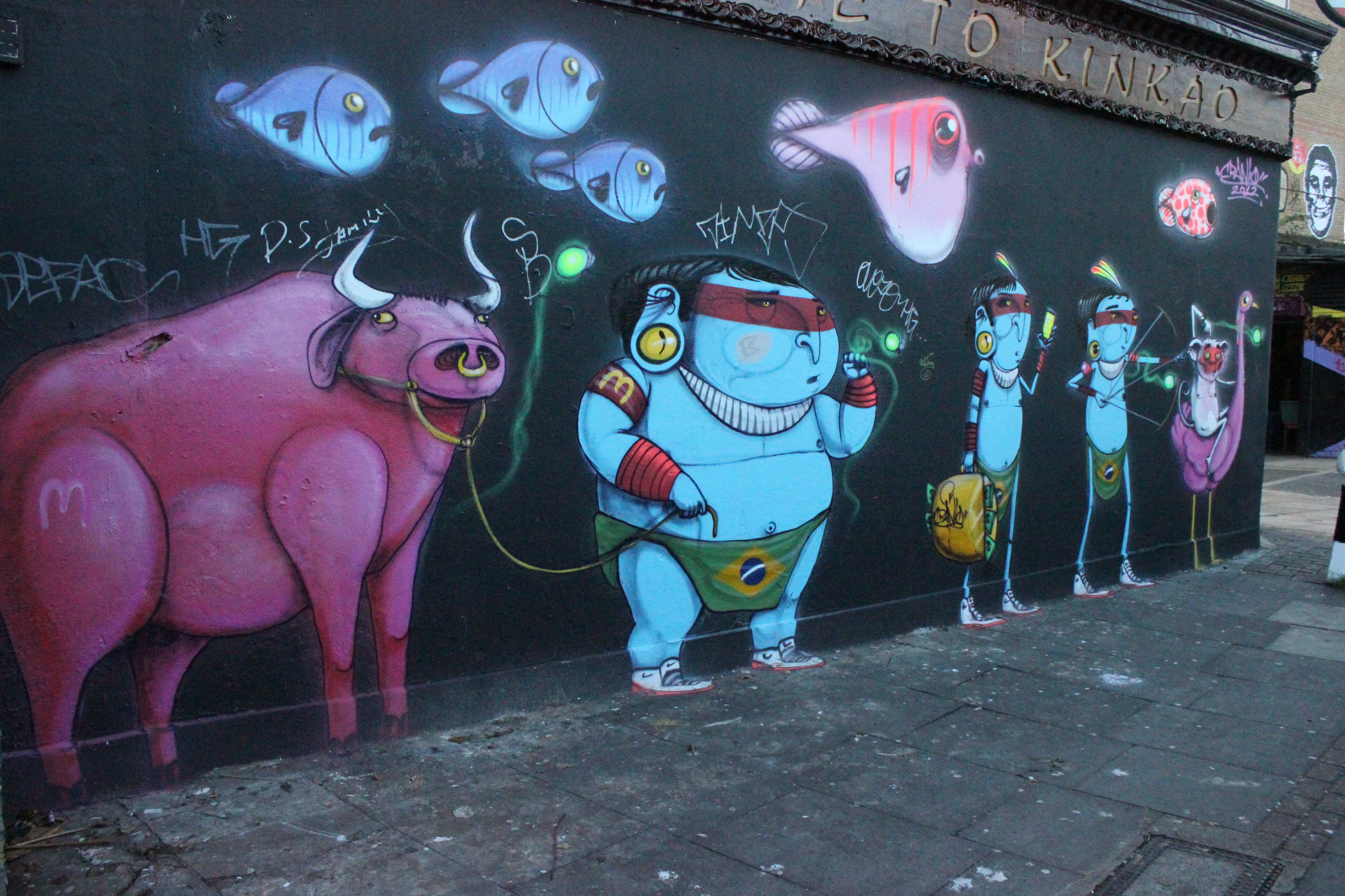 O tempo rolou e no momento em que vi o corredor norte/sul de São Paulo ter boa parte grafitada e muitas unidades da empresa em que trabalhava terem suas fachadas de prédios pintadas por artistas renomados, vim parar em Londres. Terra do cara que julgo ser o maior artista da atualidade, Banksy, local onde a arte urbana pulsa em cada esquina. Acabei parando em uma Disneylândia de artistas urbanos.