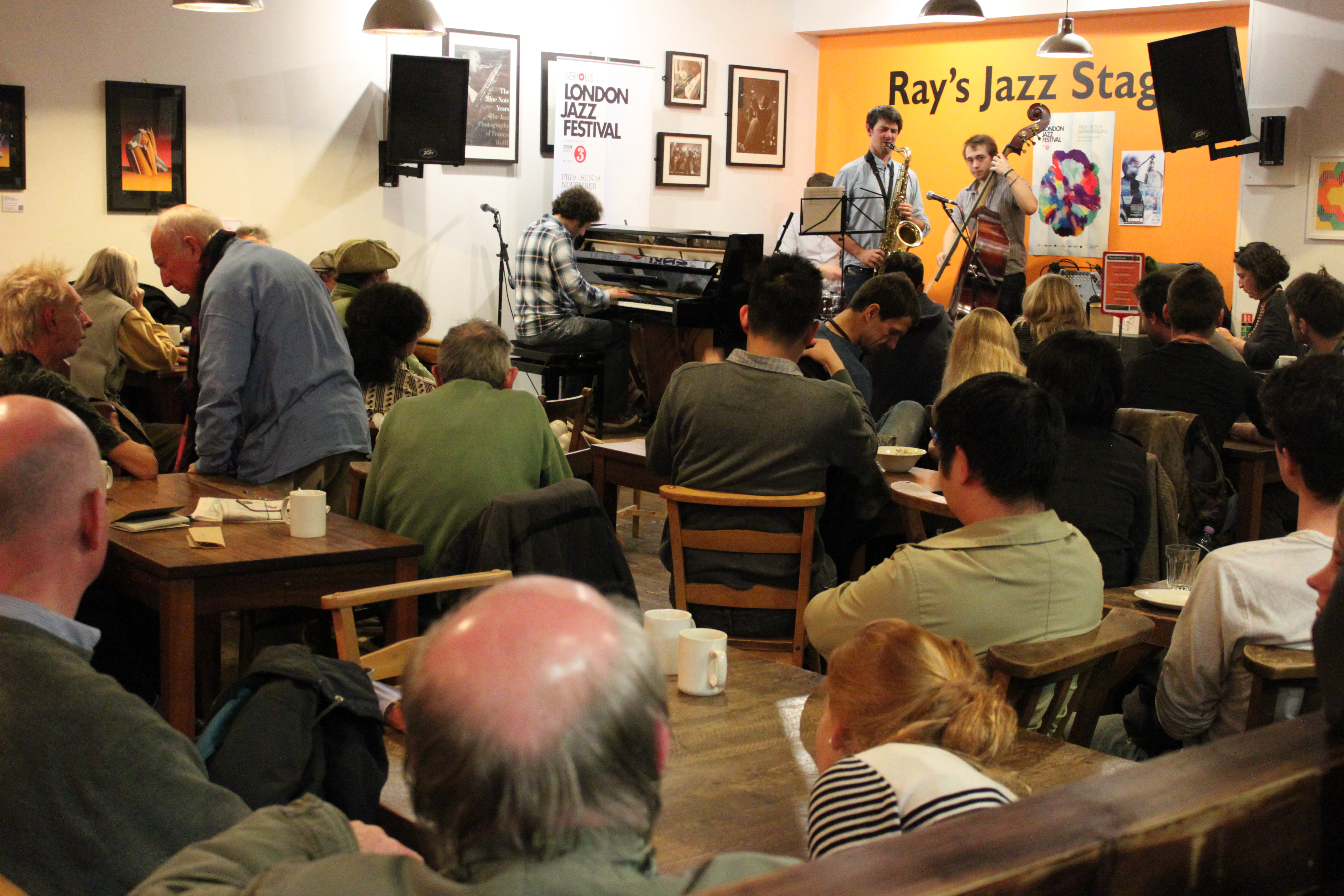 Não pelo chope e nem pelo pub, mas para aperfeiçoar meu inglês papeando com o David. Esse cara talvez seja uma das pessoas mais interessantes que já conheci. Um australiano que após viajar o mundo e já estar a alguns anos em Londres adquiriu um sotaque muito interessante, sempre vestido em um terno impecável. Ele exala um ar sarcástico ao chamar seus camaradas de “gentlemen”. O David adora falar sobre literatura, países, viagens, ironizar ingleses enquanto enaltece Londres e indicar lugares, e foi justamente ao falar sobre lugares que revelei para ele outro hábito meu, o de ir para o café da Foyles quase que diariamente para desenhar e escutar um bom jazz ao vivo.