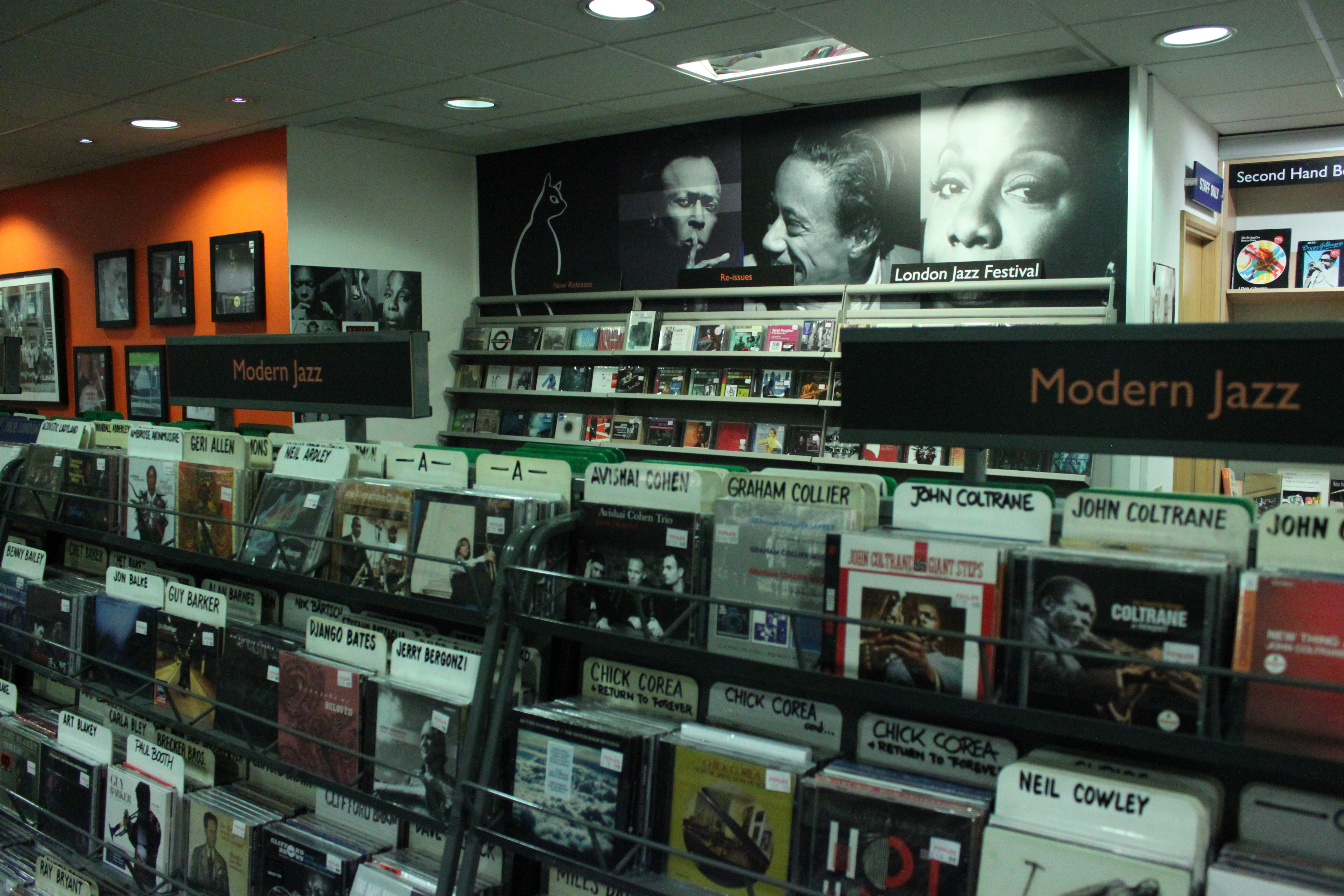 Adolfo Caboclo | Não Só o Gato A seção subsequente é a parte de CDs, LPs,DVDs e Blue Rays da casa, aonde mais uma vez o som do jazz toma conta do ambiente, cara, tem coisas do mundo inteiro lá, porém em algum momento fiquei decepcionado, pra ser exato no momento em que eu vi que na seção de filmes sul americanos não tinha nenhum brasileiro.
