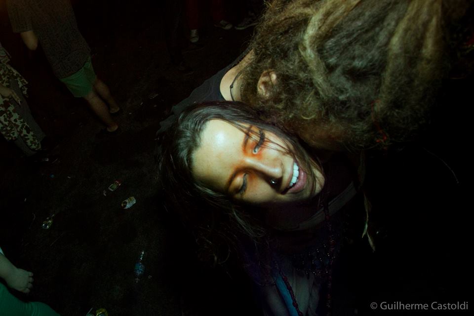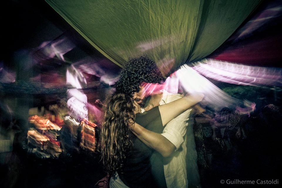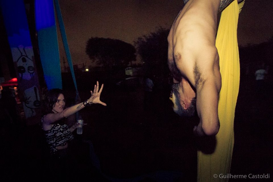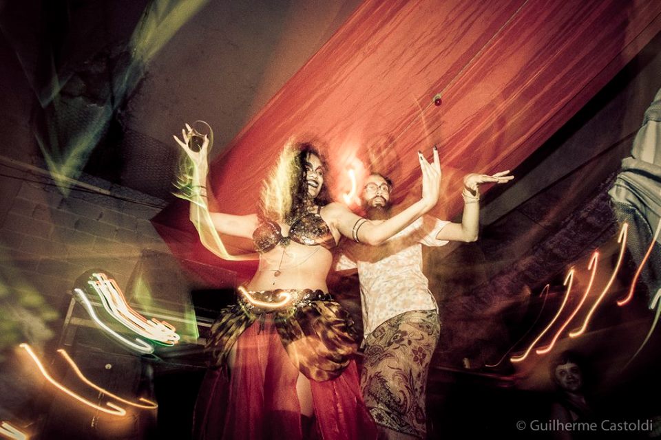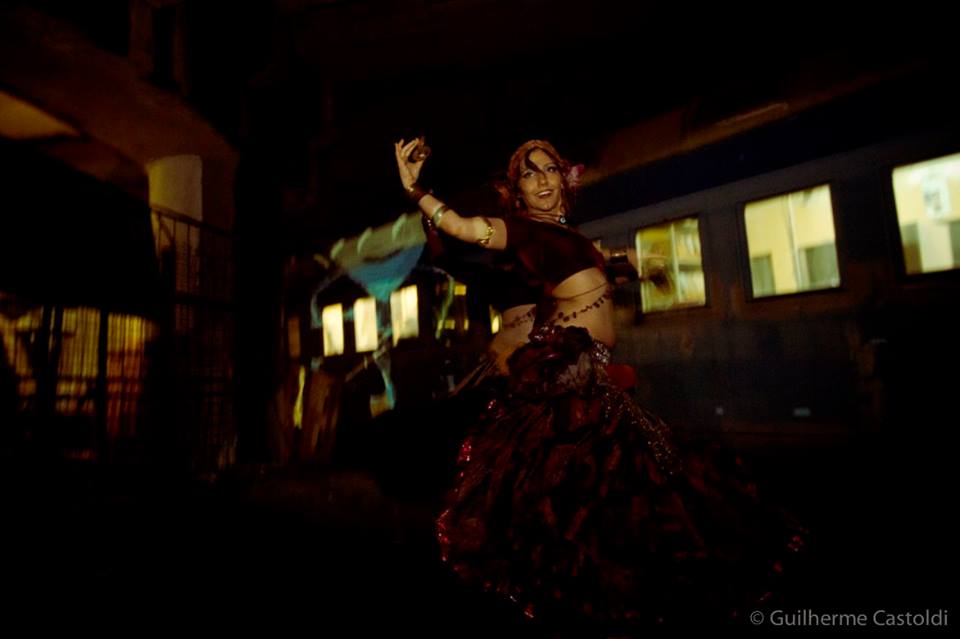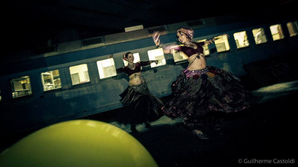 Vi o Denny, um dos idealizadores, e com a maior cara de pau do mundo pedi para ele me dar uma entrevista. Ele me disse que iria apenas se arrumar e que depois, junto com o seu parceiro “cigano” idealizador, o Don, iria falar comigo. Por isso, não acho que eu deva contar tudo que eu vi na festa: não teria como explicar a sensação de ver vagões antigos abandonados recebendo projeções gráficas incríveis; seria impossível descrever a sensação de estar debaixo de um viaduto todo grafitado e no meio da festa descerem acrobatas em panos circenses; não consigo descrever aquela atmosfera onde o corpo é tratado como arte e rodopia no meio de músicas dos Bálcãs, Oriente, Espanha e infinitos outros lugares que o evento explorou esteticamente. O que eu posso mostrar aqui é a entrevista com os apaixonantes Denny & Don e claro, o ensaio que esse evento rendeu ao Guilherme Castoldi.