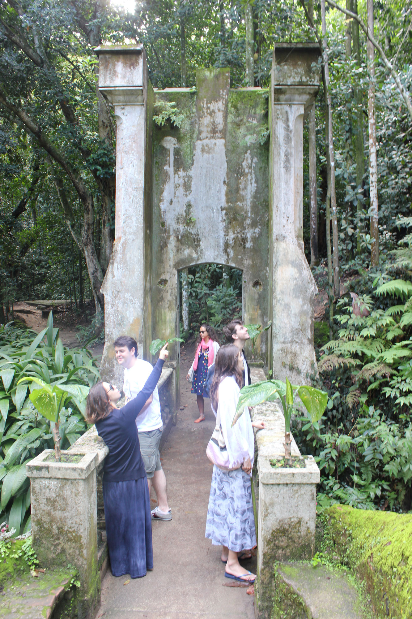Adolfo Caboclo | Não Só o Gato Após o táxi ter deixado nossa alegre trupe em frente ao parque, logo nos rendemos ao nosso sangue paulistano e começamos a explorar os verdes arredores da casa principal como verdadeiros bandeirantes. Entre árvores e saguis descobrimos peculiaridades encantadoras, como um aquário incrustado em um rochedo, cavernas frias profanadas por feixes de luz solar e idosas ruínas sendo engolidas pelo verde local. Ao final de uma rápida trilha encontramos uma cachoeira e a leveza em nossos pulmões (cansaço nas pernas também, mas o meu sedentarismo não vem ao caso).