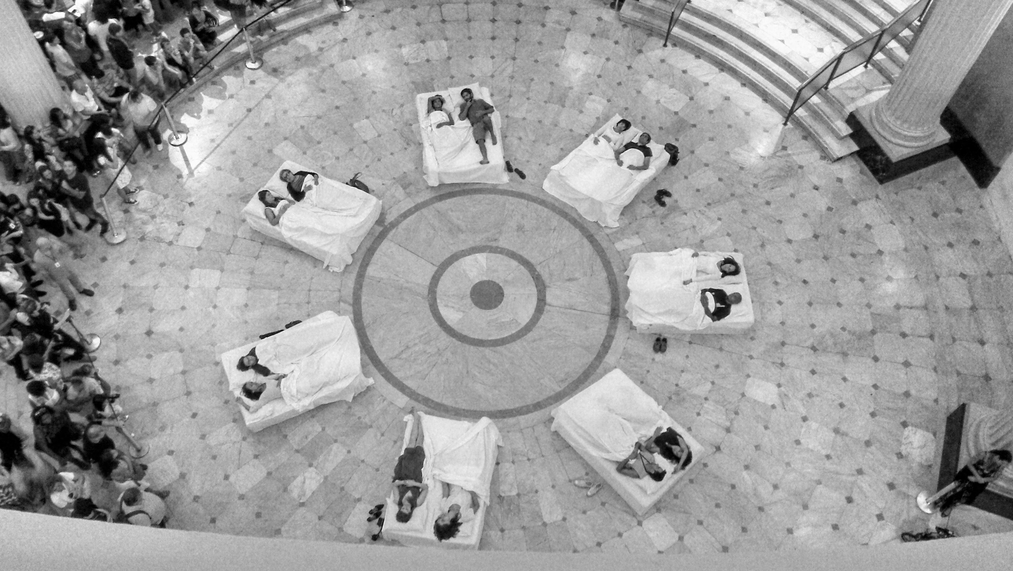 Imagine, durante dez minutos, dividir a cama com uma atriz, entre outras 6 camas, cada uma com outra atriz, que se deita com outro espectador e diz a ele o mesmo texto que você escuta, de autoria de Rubio. Leve em consideração não somente as suas inibições e inseguranças, ou as suas entregas e emoções, mas o pé direito altíssimo da rotunda do centro cultural contrastando com a brancura dos travesseiros e lençóis e as várias pessoas que observam aquele momento tão íntimo e o oposto disso, também. Para mim, foi tocante. Aliás, ainda busco definir o impacto dessa experiência em mim.