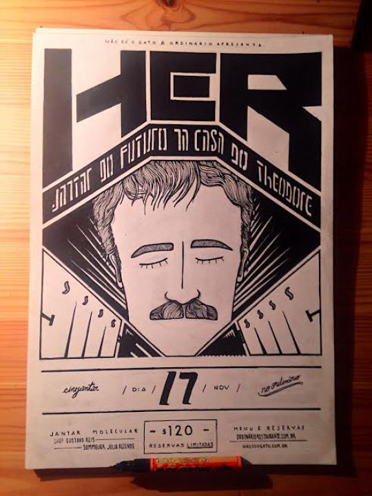 Baseado no filme Her, do diretor estadunidense Spike Jonze, propomos um jantar sensorial para buscarmos a nossa Samantha, que surgirá através da comida do futuro, de surpresas visuais e de uma harmonização do amanhã.