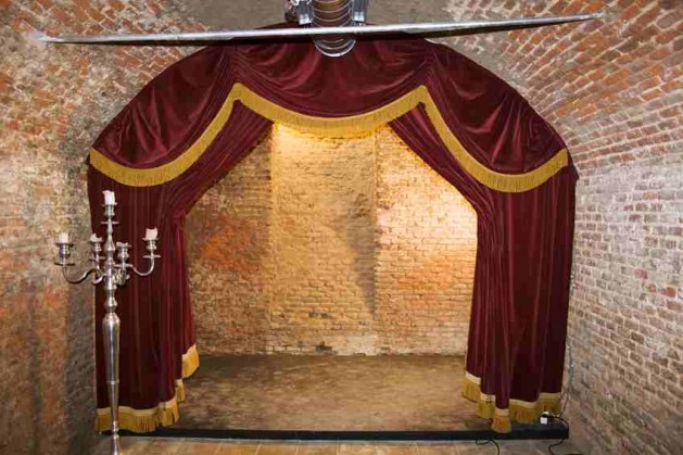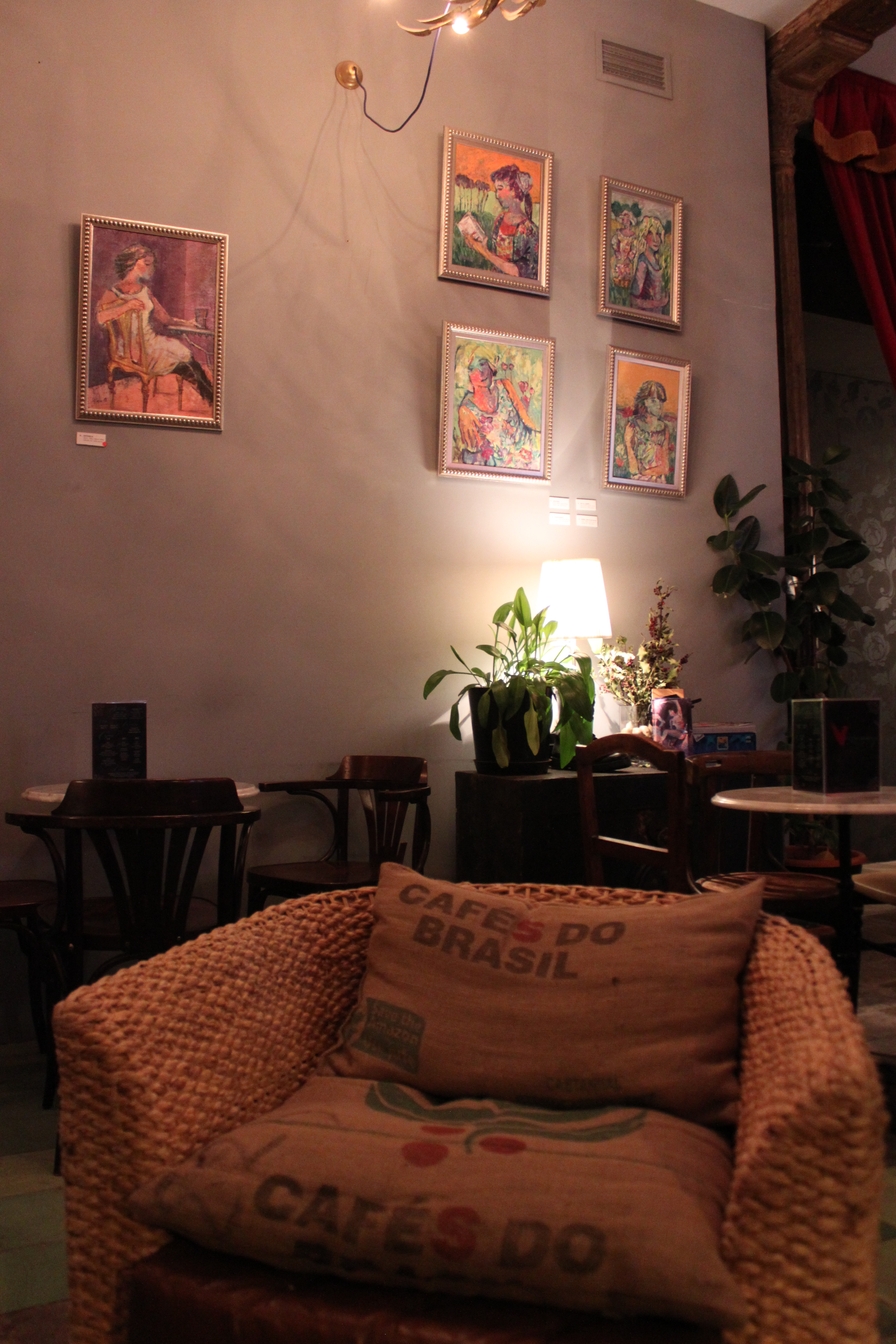 é dividido em dois andares. A parte superior é um bar e também é onde rola alguns shows. As paredes desse andar é dedicada a exposições de obras de arte, uma mais linda que a outra. Também tem um piano no cantinho pra quem quiser tocar, sofás confortáveis, e até uma almofada forrada com uma embalagem do “Café Brasil” – pequenos detalhes que fazem toda a diferença. Já a parte inferior da casa é chamada “Sala Samotracia”, a sala de teatro onde, além de peças, há também oficinas e shows. Com capacidade para 50 pessoas, o tamanho da sala faz com que o espectador, vendo a peça mais de perto, tenha uma relação de maior intensidade com a obra.