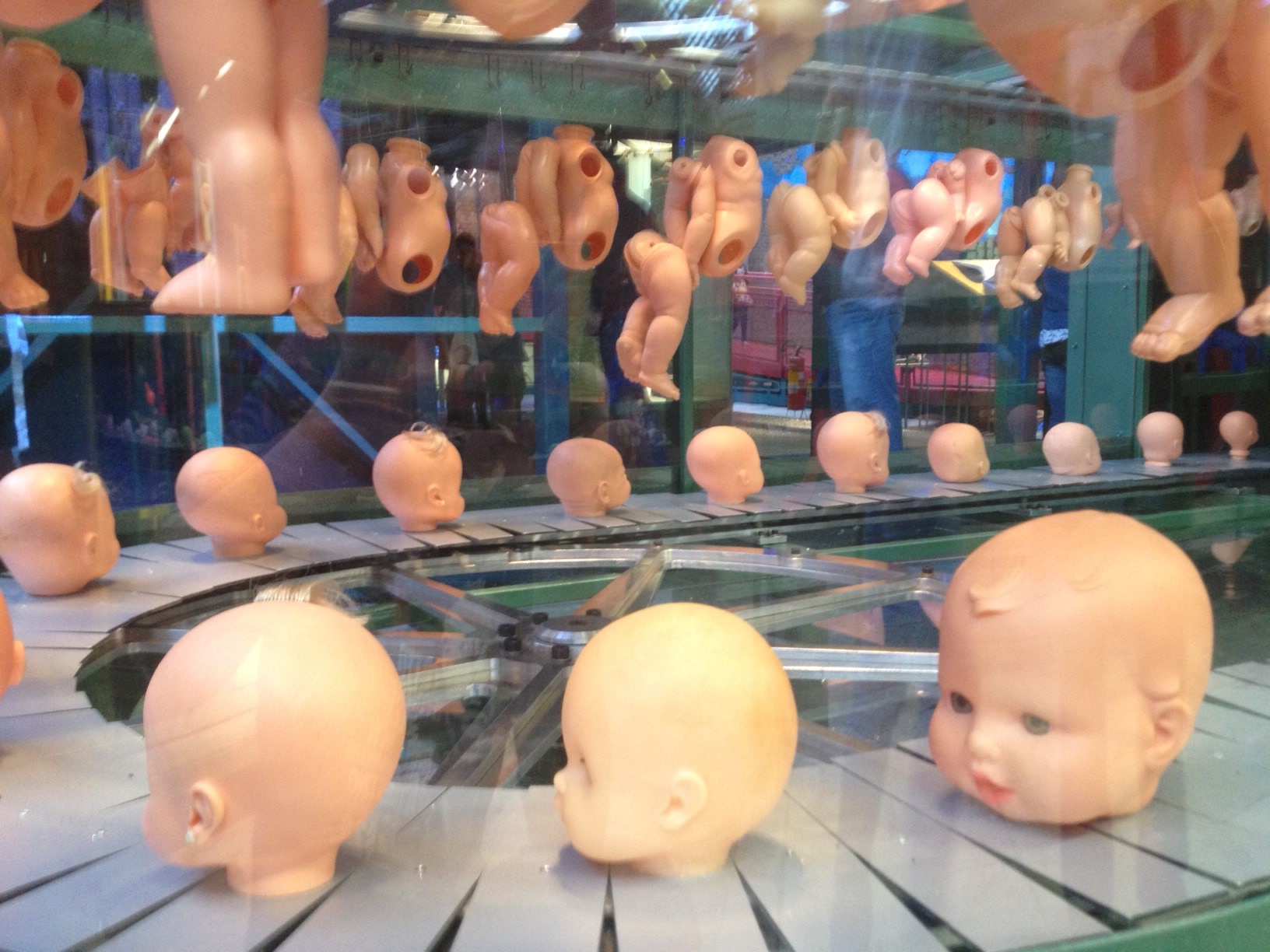 Nesse galpão cheio de brinquedos, não me vi criança com os lindos bonecos animados movidos por motor do Mestre Molina (embora tenha me encantado muito com a delicadeza de sua obra), nem na parte de aviões e das naves do Star Wars (a excitação ao ver essas naves ficou a cargo do meu namorado), mas me vi criança quando cheguei na seção das bonecas. Uma das grandes sacadas dessa exposição é mostrar determinado brinquedo pronto, mas ele também desmontado. Na seção de bonecas, por exemplo, havia uma fabriquinha, onde, de um lado, estavam as partes das bonecas separadas, e no outro, elas prontas, com roupa e tudo. Inclusive, com o brinquedo da personagem Arara Azul, do filme Rio, reproduziram até o processo de pintura das peças de plástico, que é muito delicado e feito a mão, diferente da maneira que a gente imagina que elas sejam feitas. Ao mostrar para as crianças que há todo um processo por trás da construção de cada brinquedo está se valorizando essa peça, e mais, mostrando que ela é única, portanto, especial. Achei essencial essa pequena parte da mostra que é tão importante frisar neste mundo onde crianças já são consumidoras vorazes desde sempre.