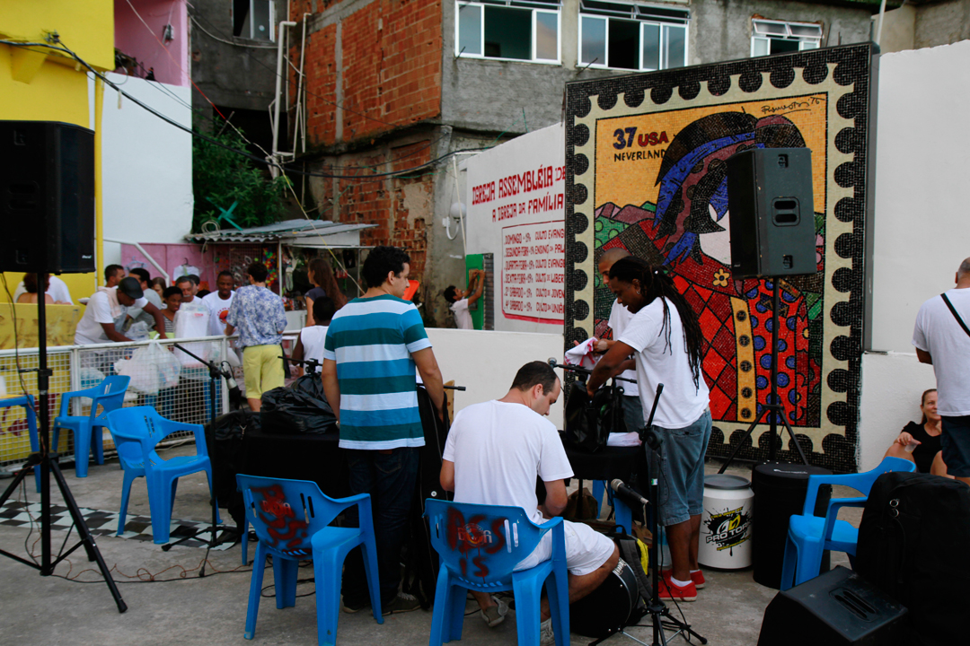 Para minha surpresa, meu almoço acabou em samba. Todo primeiro sábado do mês acontece o Pôr do Santa, um samba ao vivo, na laje do Michael Jackson, entre as cinco e as dez da noite, com feijoada a R$10. Vale a pena chegar um pouco mais cedo e evitar a fila do bondinho. Na laje existe ainda um bar com cerveja gelada a R$5, um ponto estratégico para aguardar o samba começar. O Pôr do Santa fica bastante cheio e o público é bem variado, estrangeiros, moradores do morro e vizinhos da Zona Sul compartilham a laje durante o evento e o clima é de festa. Mais do que isso, para mim, clima de festa fora da cidade, por ser um lugar com uma vista do Rio que eu ainda não tinha tido a chance de apreciar.