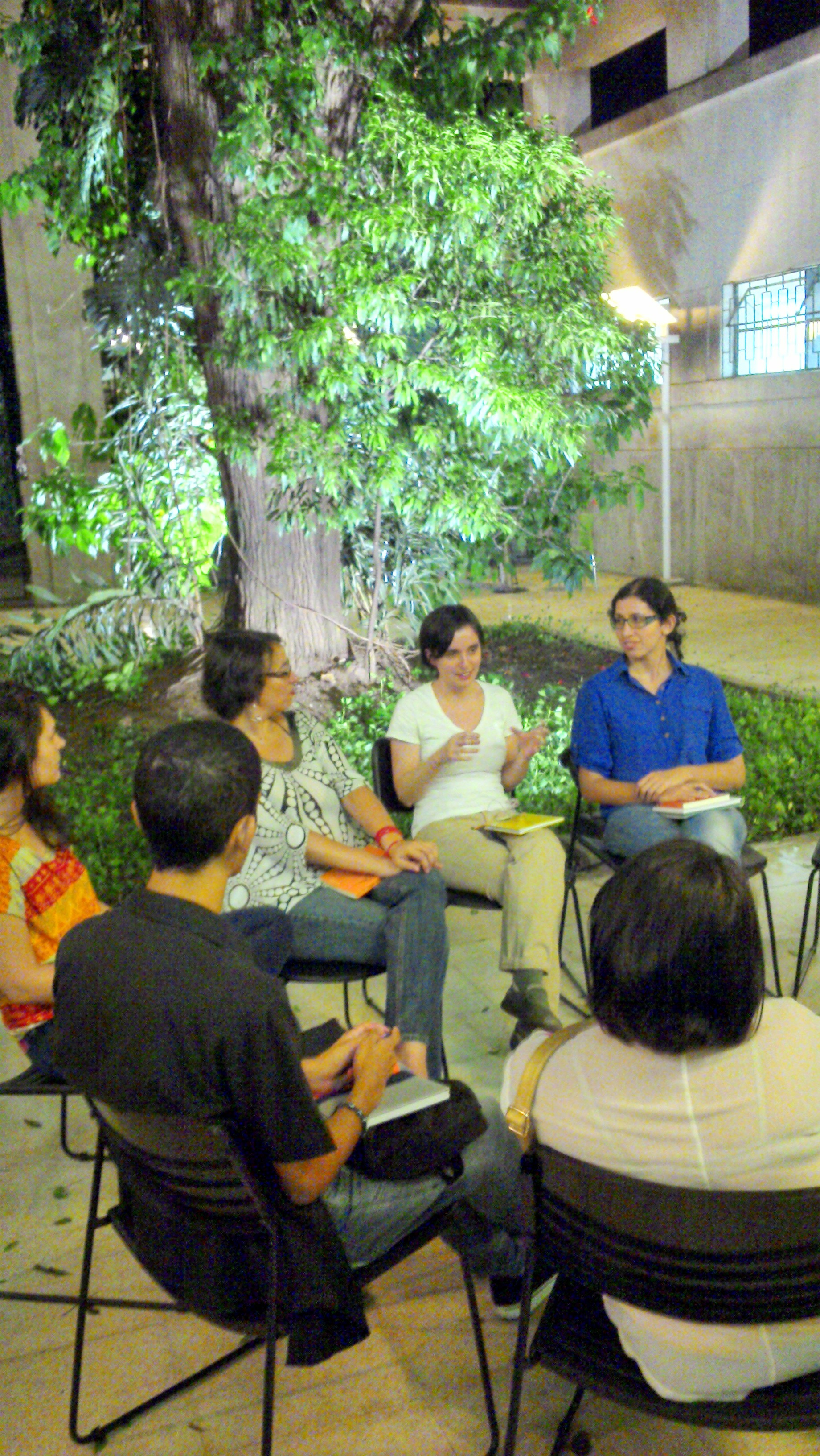 E quando disse que o diferencial do clube de leitura é o fato dele ser realizado na Mário, esqueci-me de mencionar o detalhe que o torna ainda mais charmoso: o encontro acontece no pátio interno, debaixo de uma grande árvore!