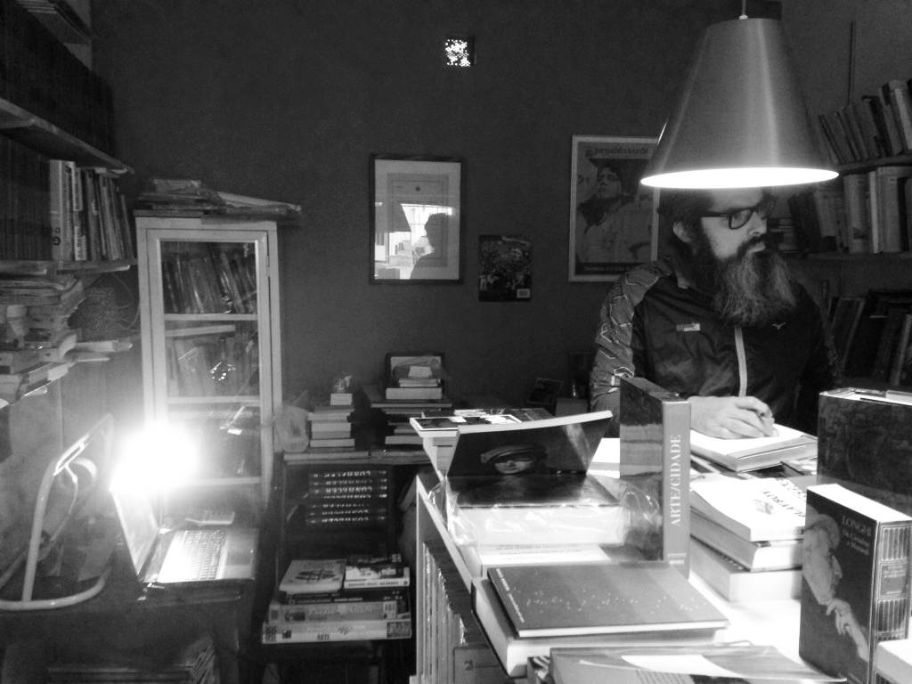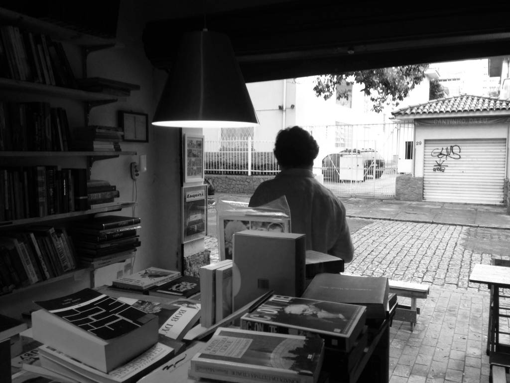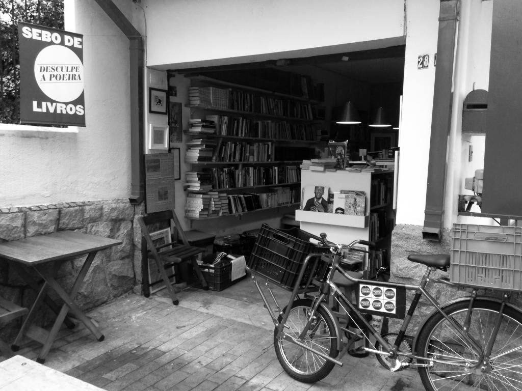 Por um momento me senti como o Gil – personagem de Owe Wilson no Meia-Noite em Paris, quando se vê transportado para Belle Époque parisiense. No meu caso, claro, foi bem mais singelo, me senti levado pra uma São Paulo provinciana, talvez gozada apenas pelos meus avós. Mas, apesar de tudo isso, o que realmente me chamou a atenção foi um sujeito de longas barbas sentado em frente a portinha de uma pequena garagem. Pouco acima da altura da portinha, uma placa avisava o desavisado viajante: “Sebo Desculpe a Poeira”. Nessa hora, veio o estalo que eu já havia lido alguma coisa sobre um doido varrido que largou tudo para se dedicar a vender livros empoeirados. Foi muita coincidência. Venci meu hábito que me corrói de deixar tudo pra depois e resolvi conferir. Busquei meu amigo e voltamos pra fuxicar esse pedacinho de garagem recém-descoberto.
