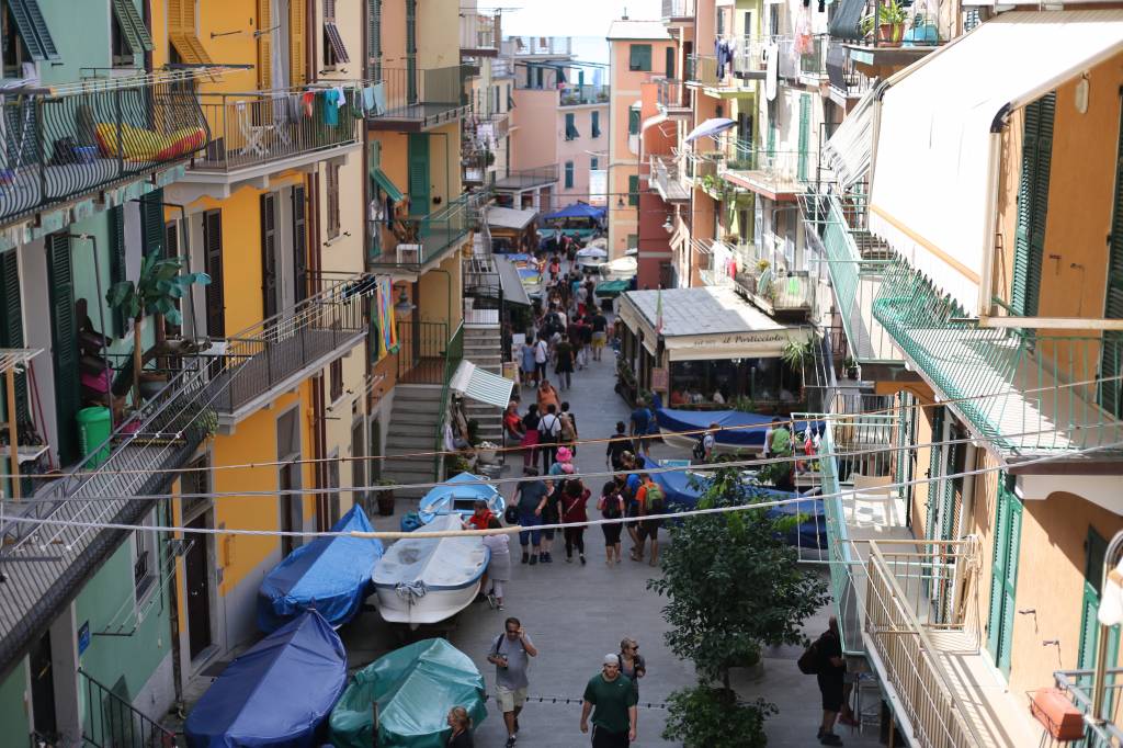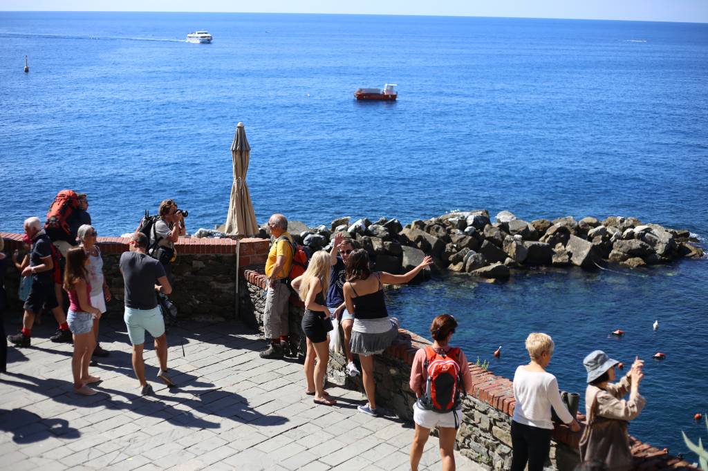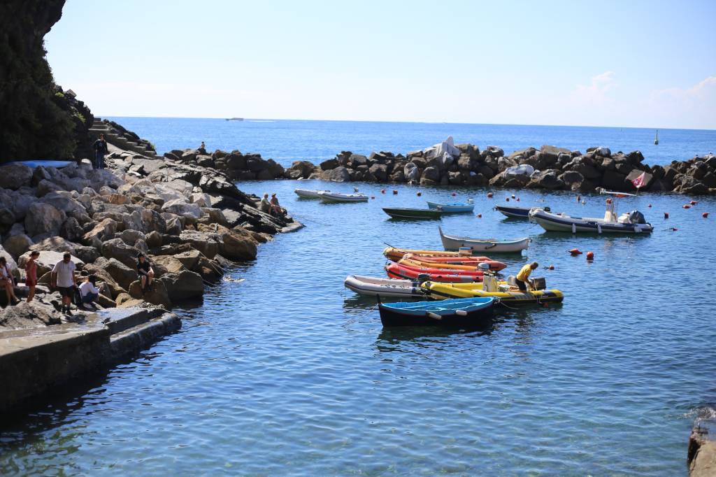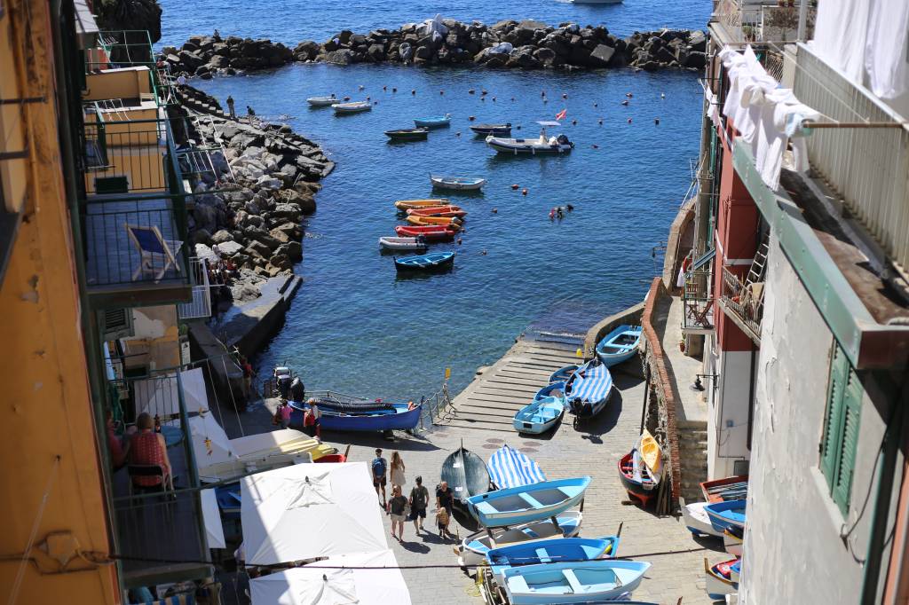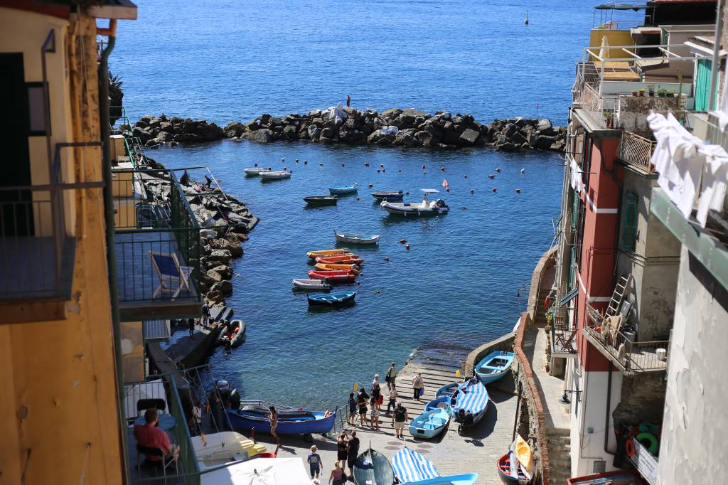 Nesse momento chorei. Com um pouco de dó das rochas de Riomaggiore, com um pouco de vontade de ser tsunami e não deixar pedra sobre pedra. Via barquinhos de pescadores parecerem um colar colorido sobre a imensidão azul. Lembrei que aquele é o mar mediterrâneo: azul, calmo. Tão diferente da raivosa massa verde que cresci prestigiando na praia do Recreio.