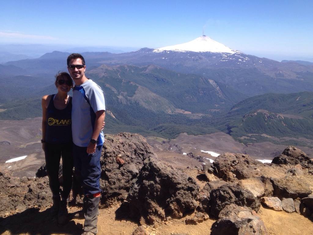 Foi dessa forma que descobri a fama de “preguiçosos” que os brasileiros têm por lá. Desde o início da jornada, em um grupo com espanhóis, japoneses e chilenos, o guia que nos acompanhava e todos os outros chilenos contaram centenas de histórias (que eles juraram ser reais) de brasileiros que desistem pelos mais diversos motivos temporada após temporada: ao perceber que não há sombra durante o caminho, por falta de música durante a subida e outras desculpas. Quando finalmente chegamos ao cume e admirávamos o Villarica e sua fumarola negra bem à frente e os outros vulcões dos arredores, meu namorado e eu começamos a defender nossa nação, provando que os brasileiros são, sim, muito ativos. Neste momento, ouvimos um rapaz (que havia subido com uma agência de turismo diferente da nossa) falando português. Não deu outra: nos unimos a ele para mostrar aos chilenos todo nosso espírito canarinho-aventureiro. Nesse momento, o guia nos respondeu: “Cuando comenzamos la caminata, eran seis”. Era verdade… Dentre os sete brasileiros do grupo, apenas um persistiu até o fim, todos os outros retornaram! Não deixamos barato e já emendamos: “Estão vendo a tal fumarola do Villarica? São os seis brasileiros que desistiram assando churrasco!”. Todos caímos na gargalhada….