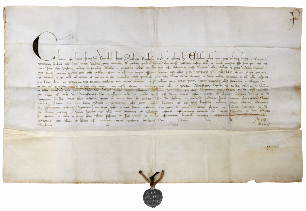 Num trecho sobre a relação entre a instituição e a Igreja Católica, é possível ver a Bula Papal de Clemente VI, publicada em 1346, há quase 700 anos! A Bula manifesta o desejo do Papa de estimular o estudo da medicina nas Universidades. Nobre, não? Clemente VI também escreveu a Bula Unigenitus, que justifica o poder papal e a concessão de indulgências. Menos nobre. De qualquer forma, o documento está lá, e impressiona pelo estado de conservação.