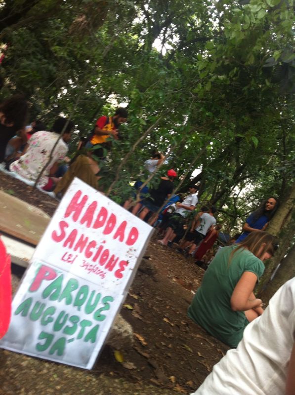 “Você praça acho graça, você prédio acho tédio”. A mensagem grafitada na frente de algumas construções da cidade de São Paulo se tornou um irônico dilema para o prefeito Fernando Haddad. Isso porque, no dia 27 de novembro, a Câmara Municipal aprovou, em segunda votação, o projeto de lei 345/ 2006 que prevê a criação do Parque Municipal Augusta. Desde então, o prefeito tem 30 dias para sancionar o projeto. Caso contrário, a área verde de 24 mil m², localizada entre as ruas Caio Prado e Marquês de Paranaguá, com mais de 600 árvores — muitas centenárias —, se tornará dois ou três prédios comerciais feitos pelas construtoras Cyrela e Setin, atuais donas do terreno.