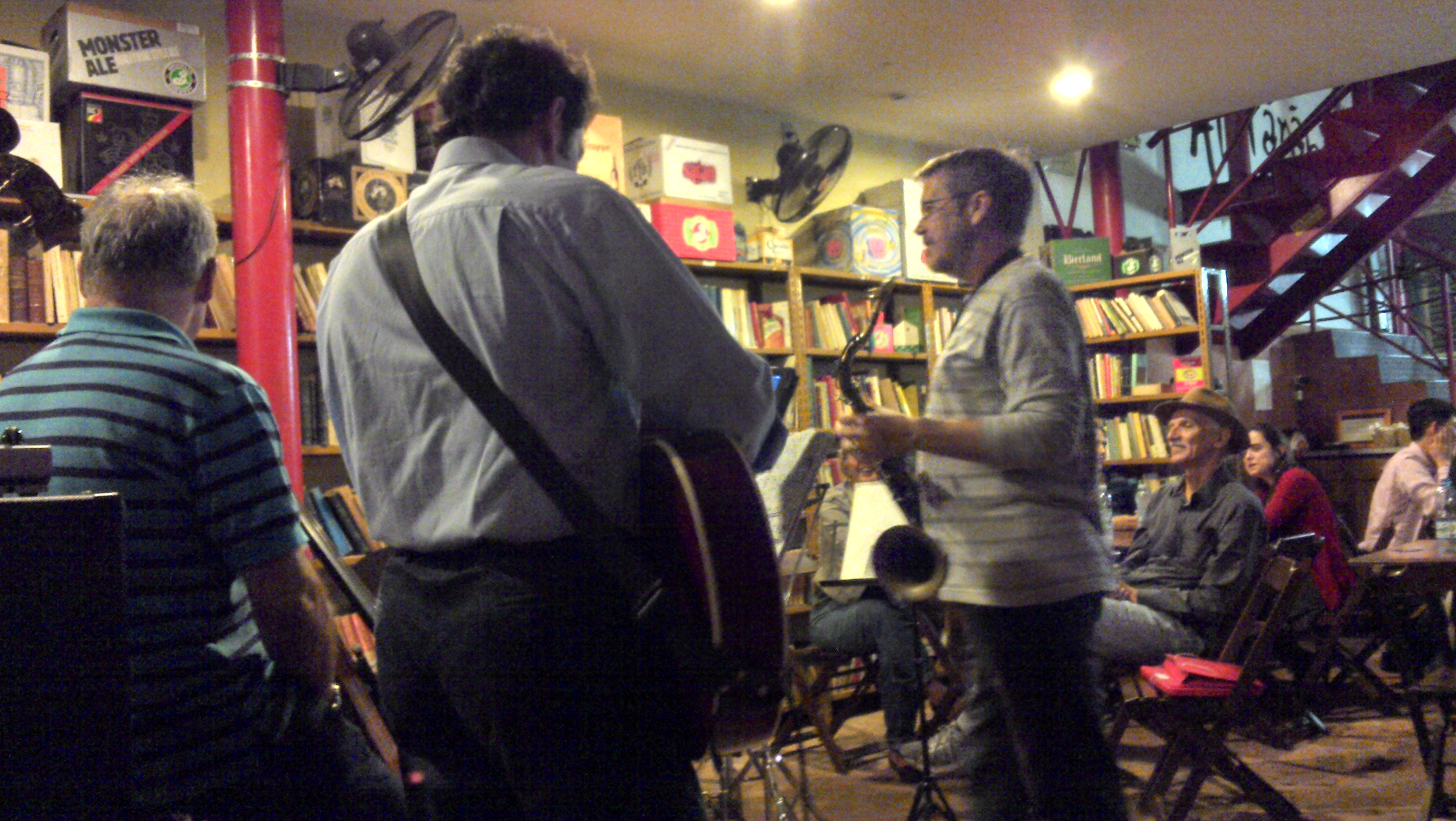 Fazendo jus à temática, decidimos conhecer outro ambiente. A companhia dos amigos, a música exótica e o calor da bebida já me tomavam quando resolvemos “pular” ao bar/restaurante ao lado, o Al Farabi. Ah, que rico achado! Ali estávamos, mais uma vez, ao som de jazz ao vivo – nesse caso do tipo clássico. Ainda, num sebo com títulos variados, e eu não sabia se bebia, conversava, assistia ao show ou fuçava tantos livros (esses maravilhosos portais de papel). Ali também havia uma razoável carta de cervejas, para coroar minha distração!