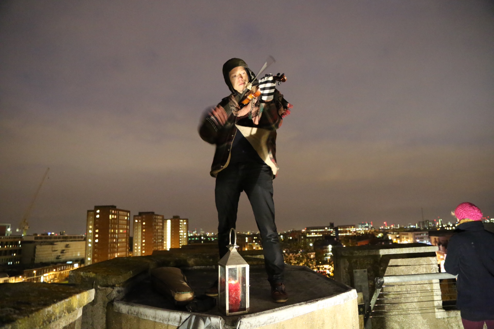 Do alto da torre era possível avistar a interminável Londres e só a experiência de estar no topo de uma torre do século XVI, contemplando ao mesmo tempo a Londres de 2013, já teria sido incrível. Em um dos cantos da torre um homem tocava violino, o primeiro contador de estória, que dentro de poucos minutos faria todos se curvarem com entusiasmo em sua direção.