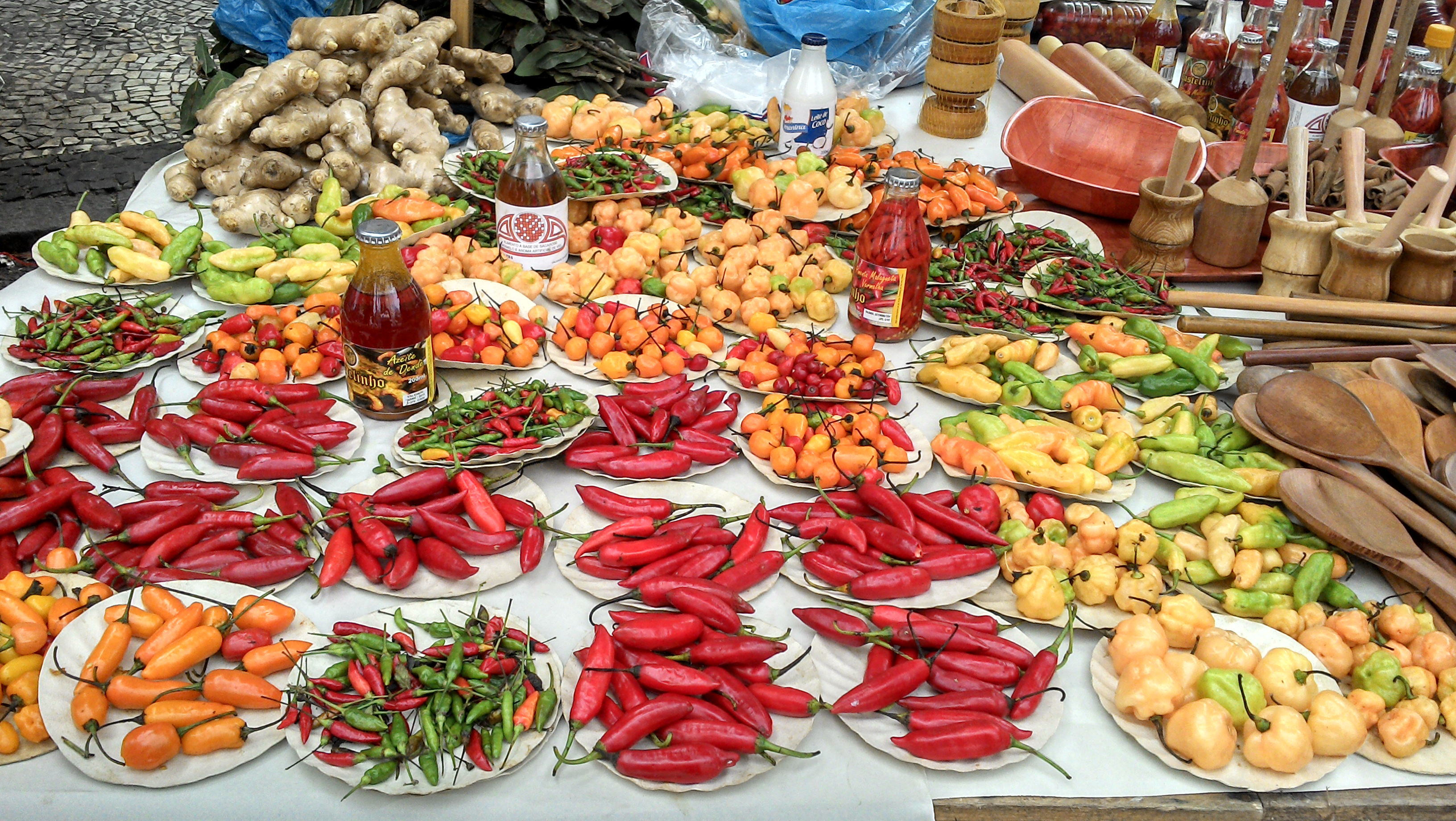 No trajeto, não pude deixar de notar o presente aos sentidos que era aquele passeio. Aromas invadiam minhas narinas e a exuberância das cores de flores, frutas e pimentas quase ofuscava a visão. Os simpáticos vendedores ofereciam suas mercadorias e tive um caso de amor dos mais sérios com um pedaço de morango que ganhei. Experimentei também um queijo curado delicioso e variados sequilhos. Recomendo um biscoito de amendoim que tem gosto de paçoca caseira e combina com cerveja que é uma beleza (juro).