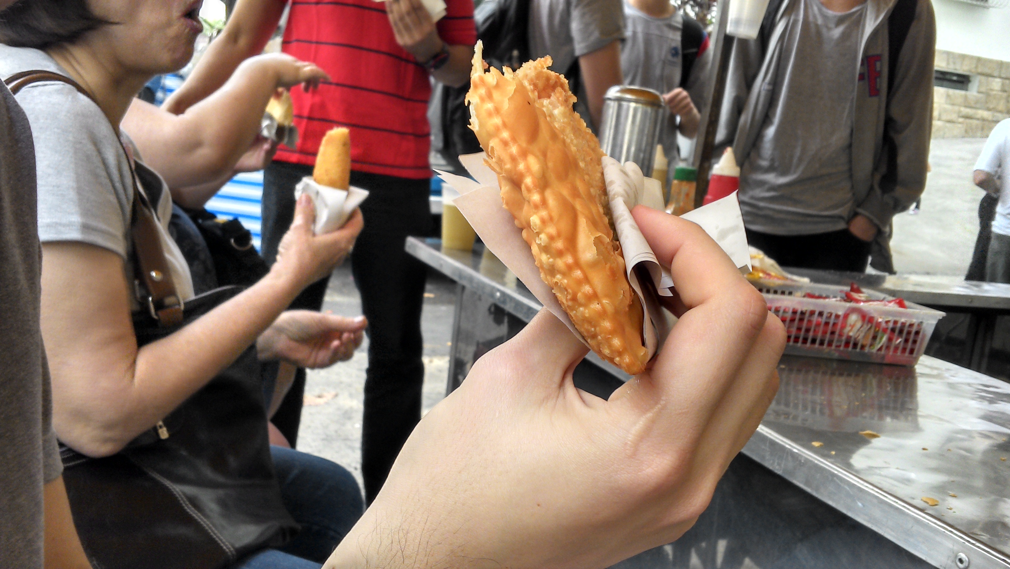 Segui em frente, e o sol escapando pelos espaços entre as tendas. Flores, frutos e verduras deram lugar aos primeiros camarões (enormes) e aquele típico cheiro de peixe foi se intensificando. Lá no final da rua estavam as barracas de frutos do mar (se você não é vegetariano, este é o lugar ideal para compras do tipo) e, no meio de tudo isso, uma solitária barraca de pastel e caldo de cana.