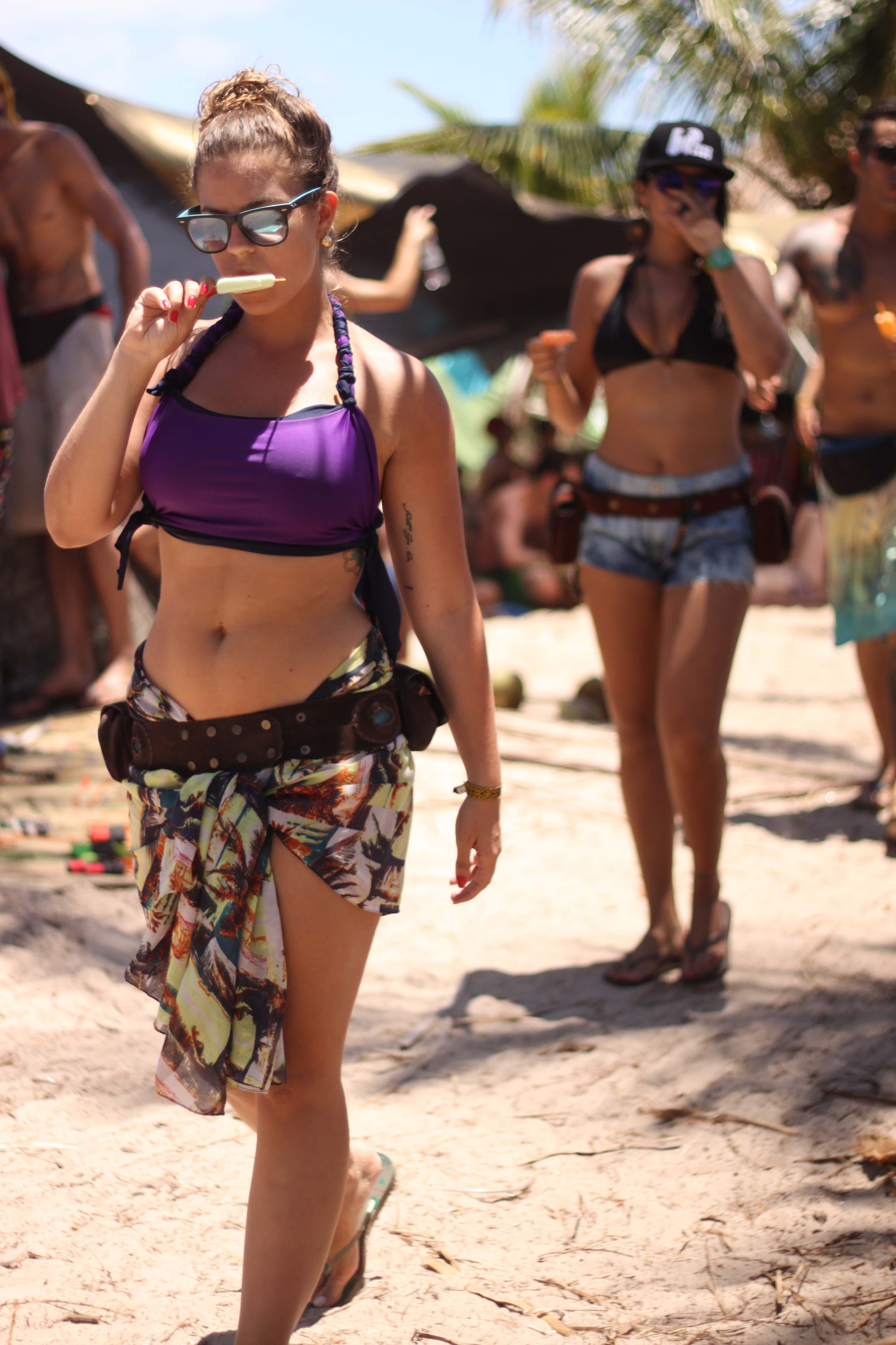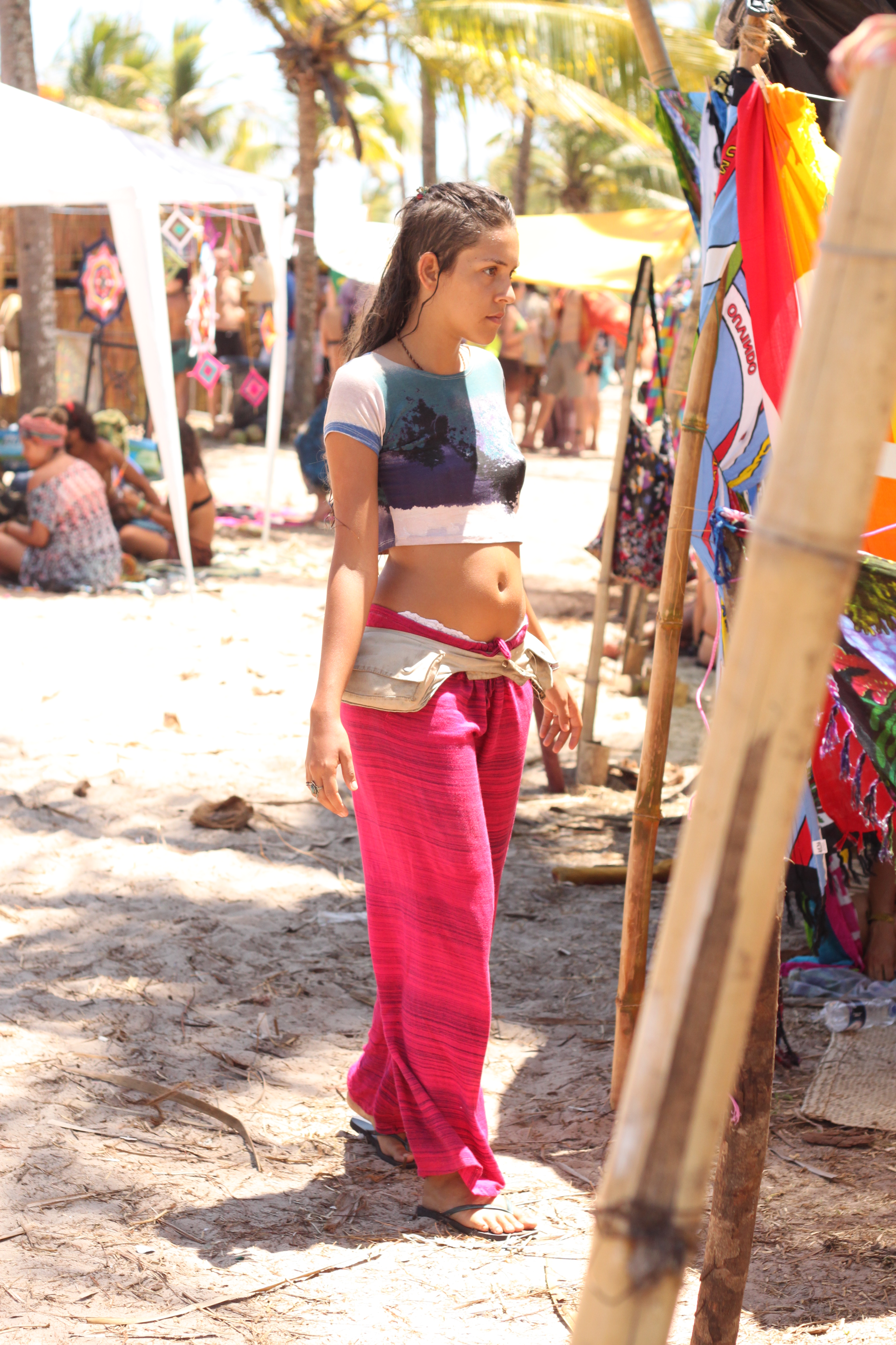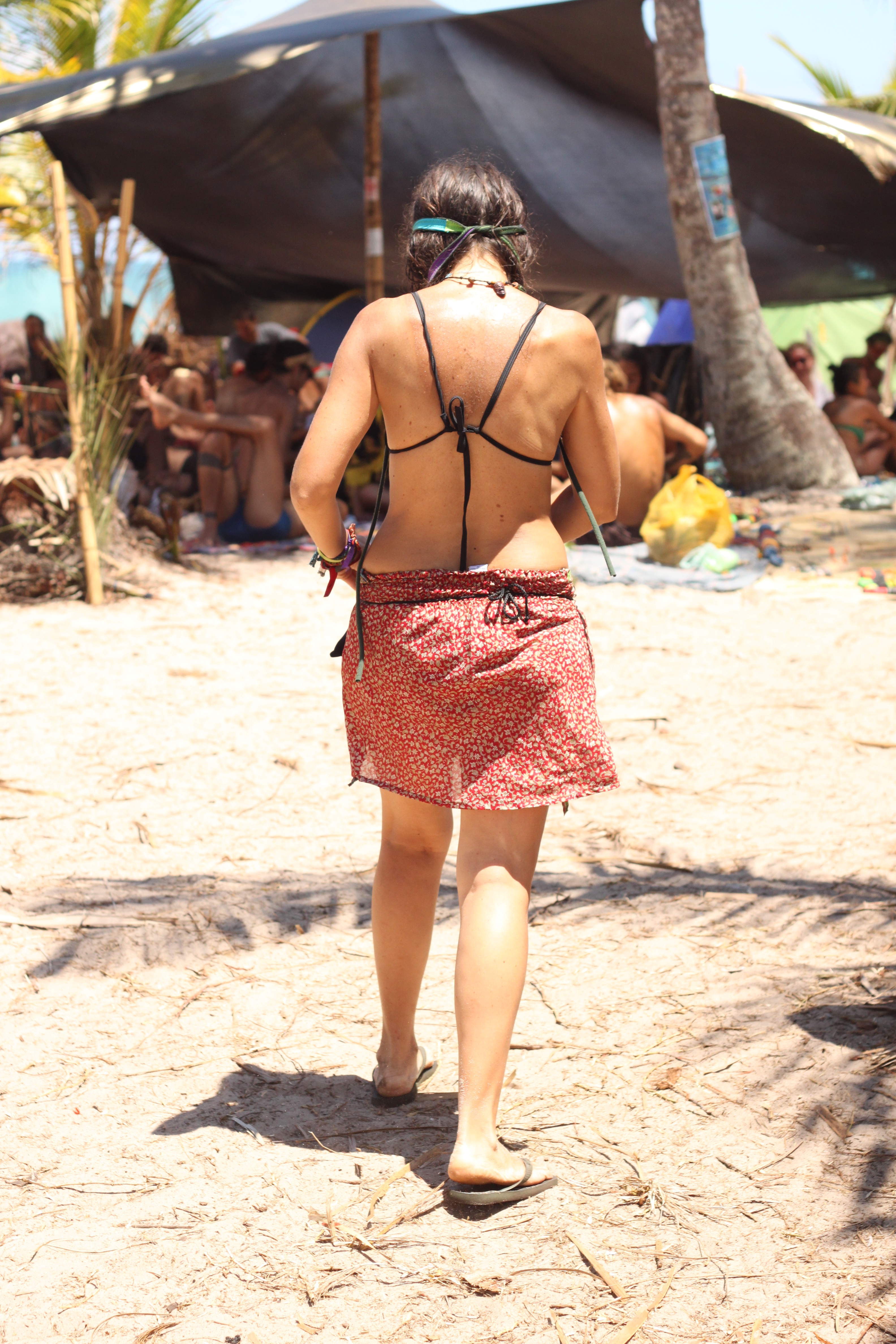 Havia um desapego, claro que sim, mas ao mesmo tempo a criação incessante de alternativas de estilo e atitude, se opondo à falta de recursos de um acampamento na praia (com direito a suor, areia, sujeira, lama e água constantes). A feminilidade não foi embora com o salto e o batom, pelo contrário, hein! As mulheres pareciam muito mais bonitas naturais e descabeladas! Cangas viravam saias, laços do biquíni davam voltas e voltas no corpo, coques ou cabelão solto de praia eram o acessório obrigatório, e todo pé limpo seria castigado.