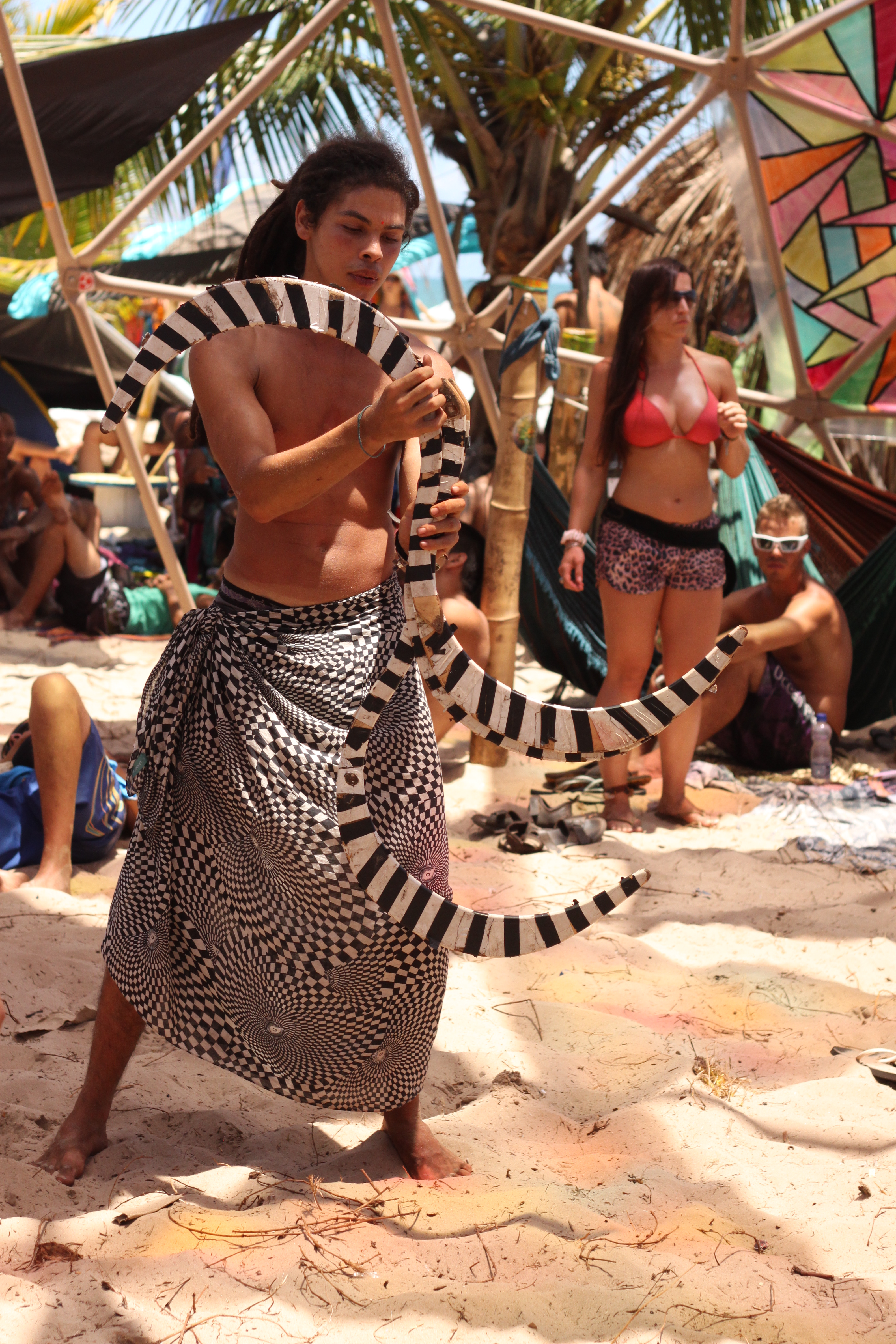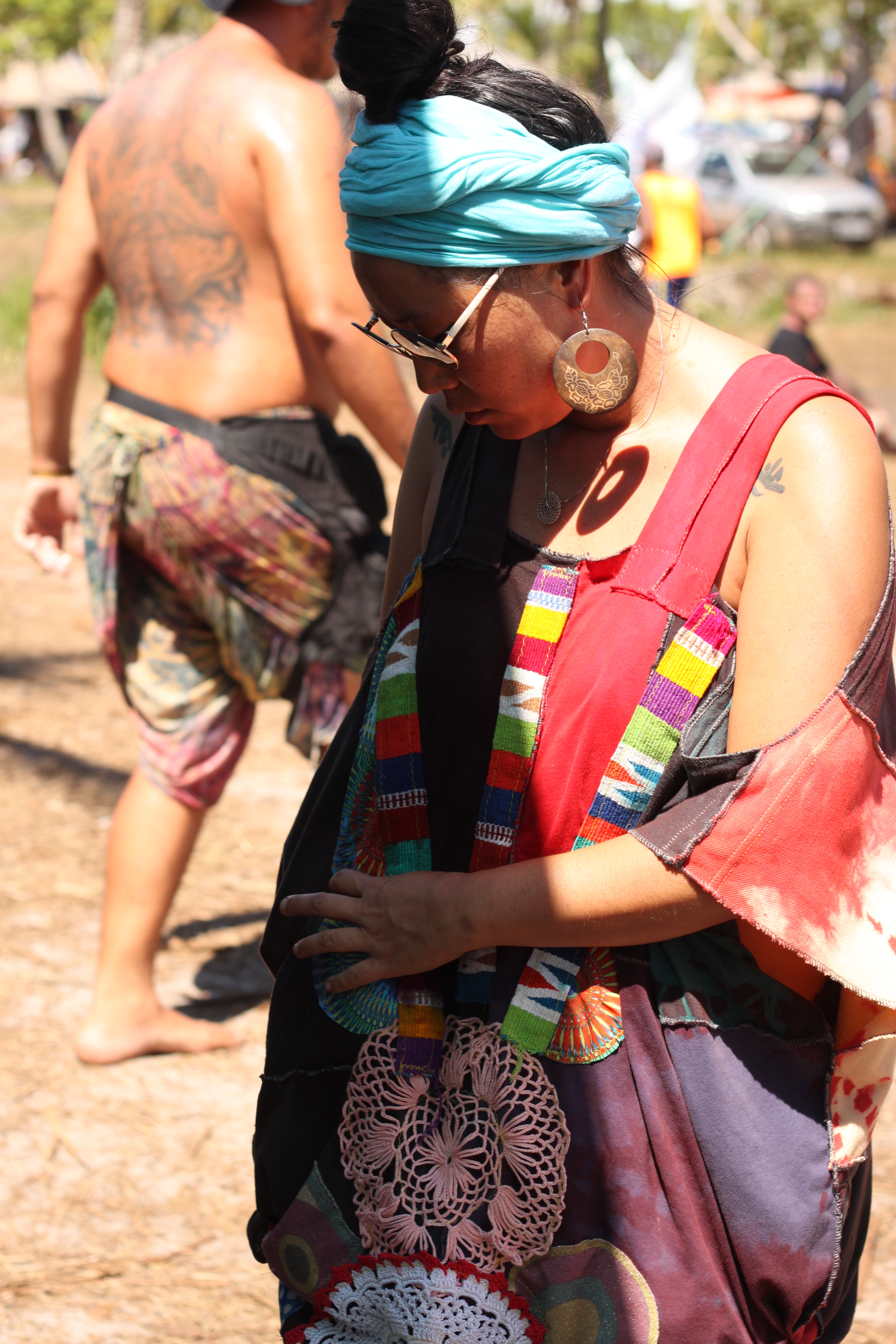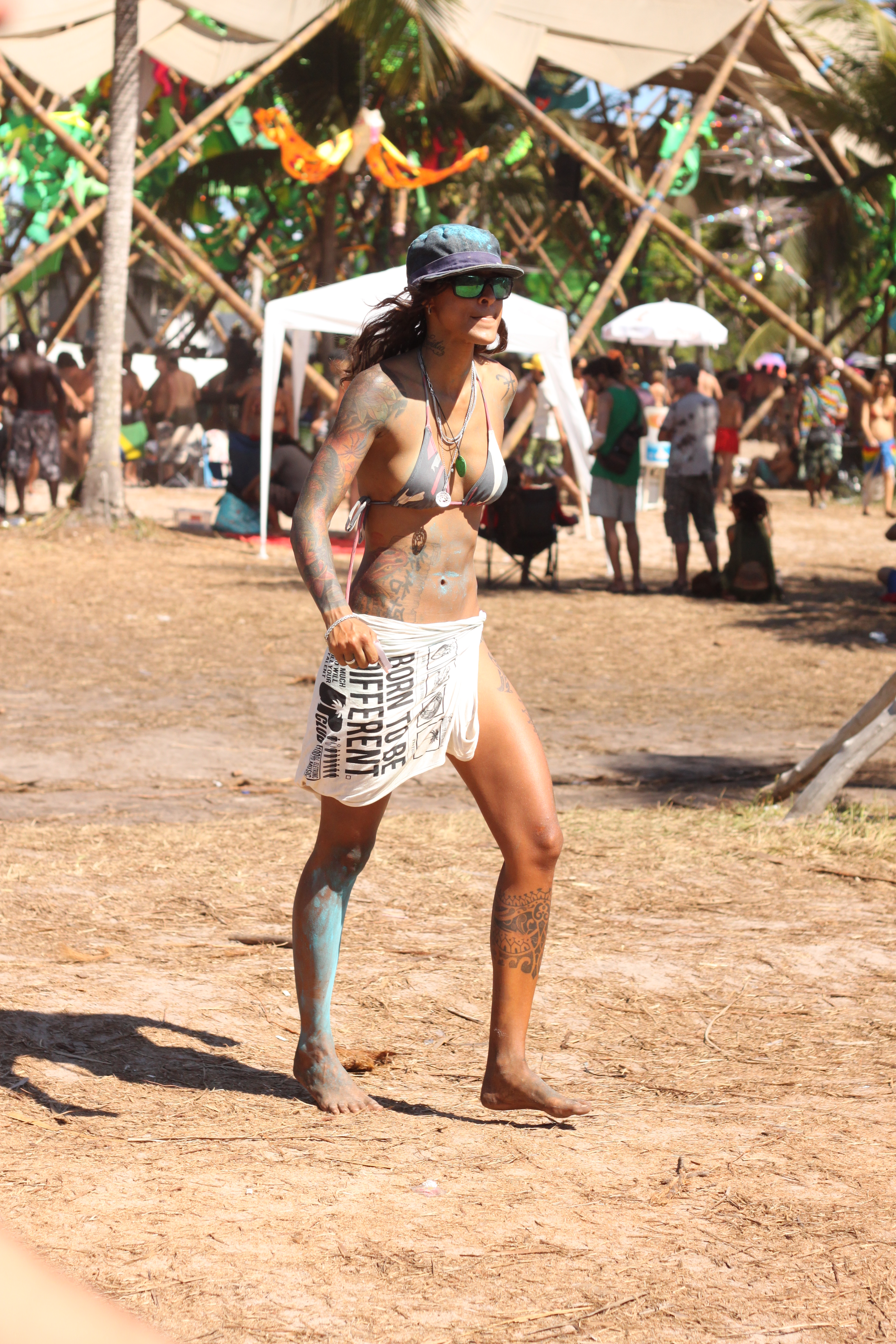 Nos cinco dias em que estive no Universo Paralello Festival, me senti particularmente desperta para o jeito de se vestir e de se enfeitar das pessoas. Havia um estilo próprio – e ao mesmo tempo muito, muito pessoal – naquele lugar. E afinal, a criatividade era palavra de ordem, já que no calor senegalês do litoral baiano era impossível usar muita roupa, ou se arrumar demais. Maquiagem estava fora de cogitação, mas pinturas faciais davam as caras, misturadas às vezes ao zim (aquele pó colorido) espalhado pelo mainfloor.
