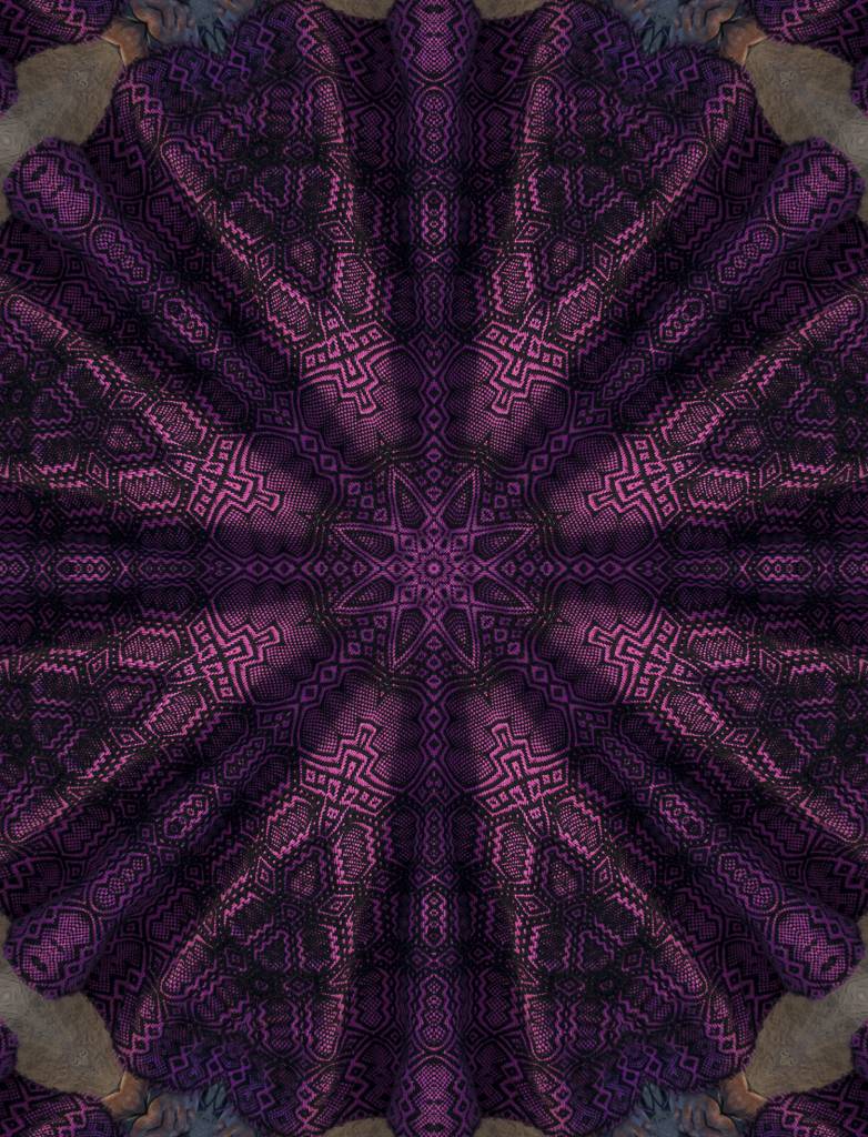 Rafa: Quando eu comecei a estudar fotografia conheci esse cara aqui, o Alex Grey [mostra outro livro enorme], um cara que teve muitas experiências místicas. Ele teve uma experiência com o LSD em que pinta o que vê. Descobri ele no primeiro ano da faculdade e tive a ideia de tentar fazer isso com a fotografia. Na fotografia é difícil, porque você não começa de uma folha em branco. Você tem que clicar uma imagem e então desconstruir. E pra ter/conseguir, essa imagem — pra ter TCC –, eu tive que tomar ayahuasca lá no Acre.