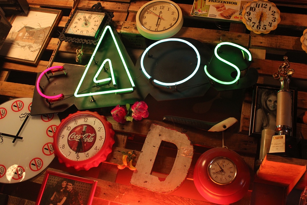 “Eu vou em feirinha, eu vou em bazar toda semana, é uma coisa que eu não consigo, sabe… A parte que eu mais gosto de fazer é o garimpo. A coisa de garimpar e colecionar é a parte mais legal.”, afirmou o Tibira, e não pude deixar de concordar. Junto com sua parceira eles esbanjam perfeccionismo em um olhar aguçado. Prova disso é que o Caos é absolutamente organizado, com uma bagunça que parece ser minuciosamente composta.