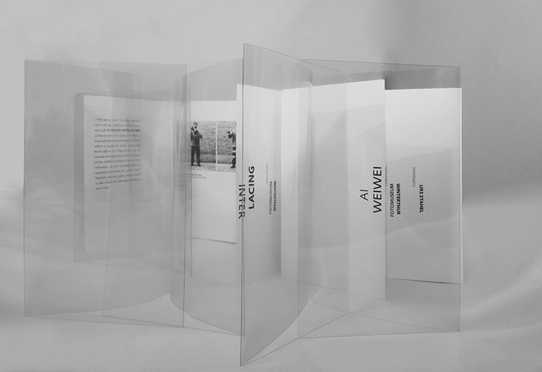 Em seu primeiro momento para o Museu da Imagem e do Som, Nasha trabalhou para a exposição de Ai Weiwei, um dos grandes artistas do momento — responsável, por exemplo, pelo estádio Ninho de Pássaro, onde rolou a abertura dos jogos olímpicos de Pequim. Nesse caso, Nasha me mostrou um folder feito de papel e PVC entrelaçados, job no qual buscou mostrar uma ideia de “interligação”, assim como em toda a identidade visual dessa exposição.