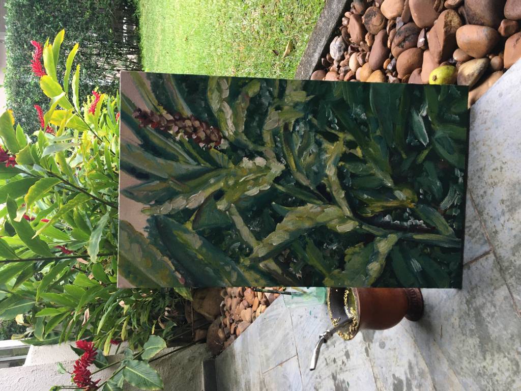 A garoa intensifica o cheiro de mato, o mato se torna refúgio na quarentena. Diante dos dias frios do inverno na Serra do Mar, encontro algum calor em livros, cuias de chimarrão e fungadas em rapé. Talvez depois do anoitecer eu queira beber cachaça, queimar uma lenha, mas lembro que preciso terminar livros de filosofia e o meu quadro.