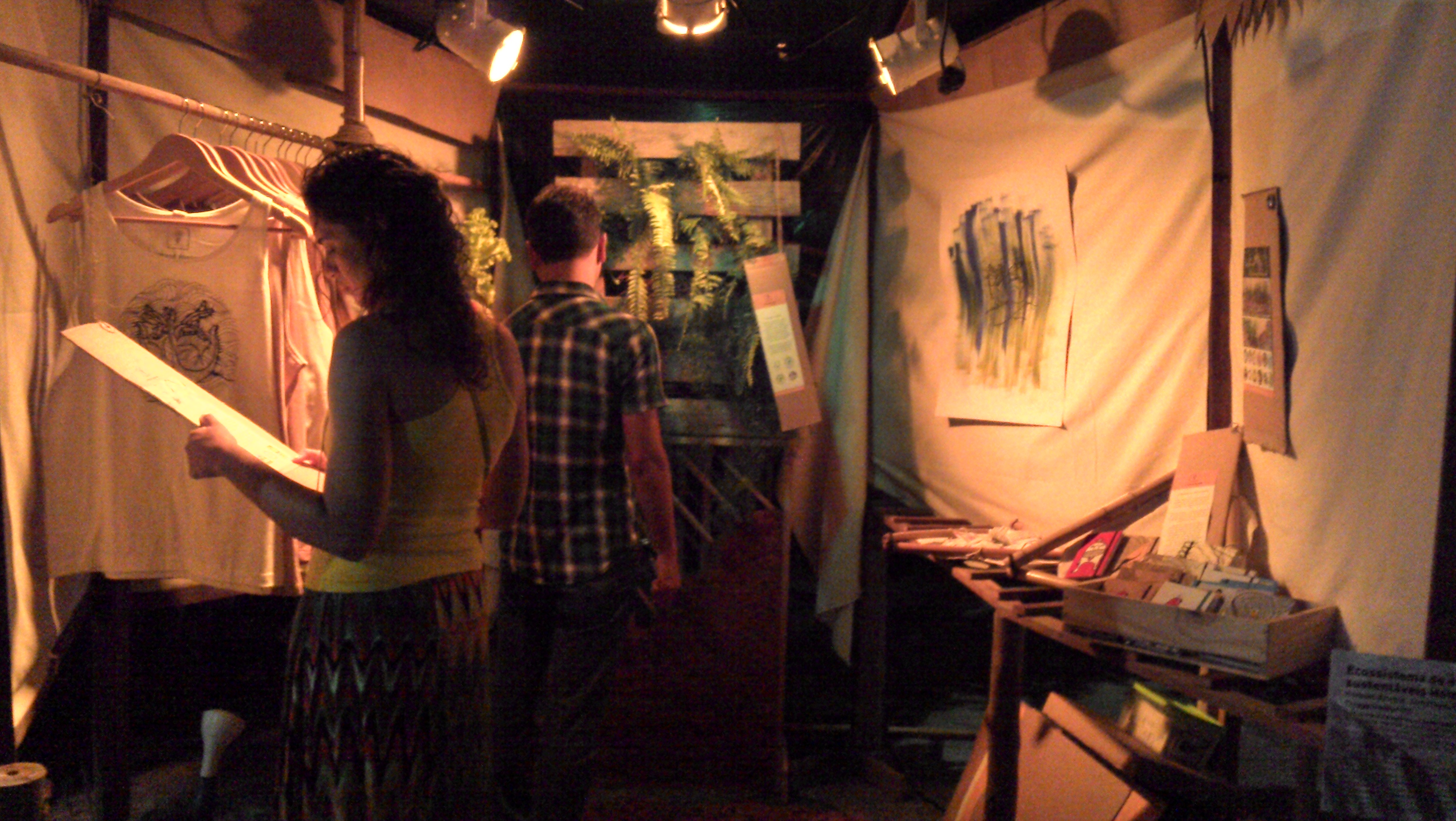 Segui passeando pelas propostas digitais, que também agregavam mobilidade e sustentabilidade, e cruzei com o Bicicletorama Revolução (um jogo de pessoas pedalando bikes reais numa pista virtual). Vi projetos como o Ciclo Rotas Centro e o Quelóides Urbanos, propondo novas e mais orgânicas maneiras de lidar com o espaço urbano. Visitei o Ecossistema de Experiências Sustentáveis Homem Árvore – espaço que exemplificava soluções de produção humanizada e ambientalmente correta na moda, saúde, moradia e decoração (ali vi, por sinal, caderninhos artesanais feitos com livros de escola, cadernos e apostilas usadas… Um lindo trabalho, delicado e particular).