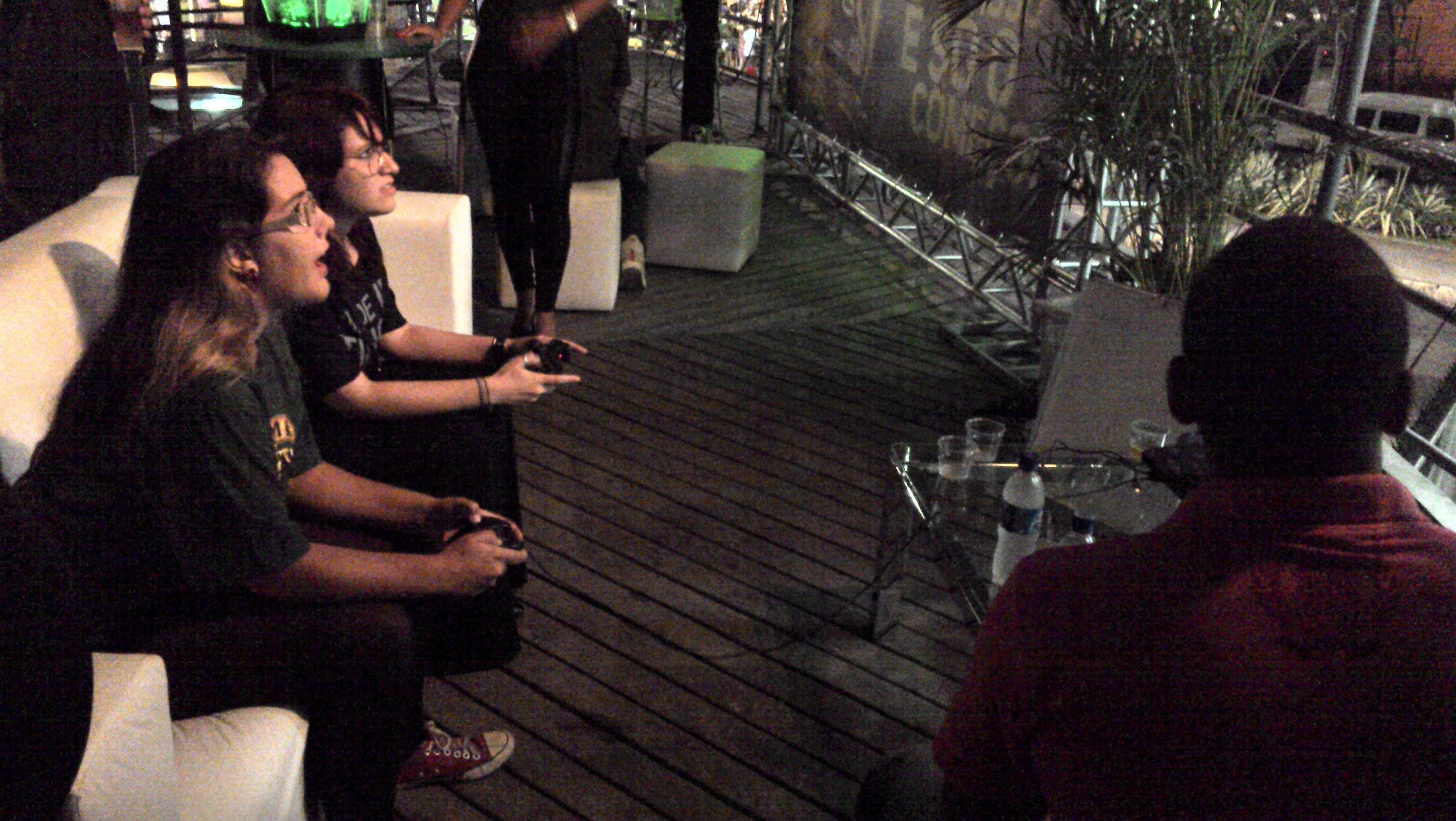 Uma das experiências mais motivadoras e sensoriais de toda essa “digitália” foi assistir (e experimentar) a performance/instalação “Me++”, do Coletivo++. Um espaço no qual a bailarina obtinha respostas visuais e sonoras aos seus movimentos. Entre uma apresentação e outra, podíamos adentrar o espaço – não hesitei e entreguei meus passos à criação de luzes e sons (tentei não me importar com a pequena plateia que assistia). Depois, fui jogar Kinect, enquanto logo ao lado uma galera se esbaldava no Street Fighter.